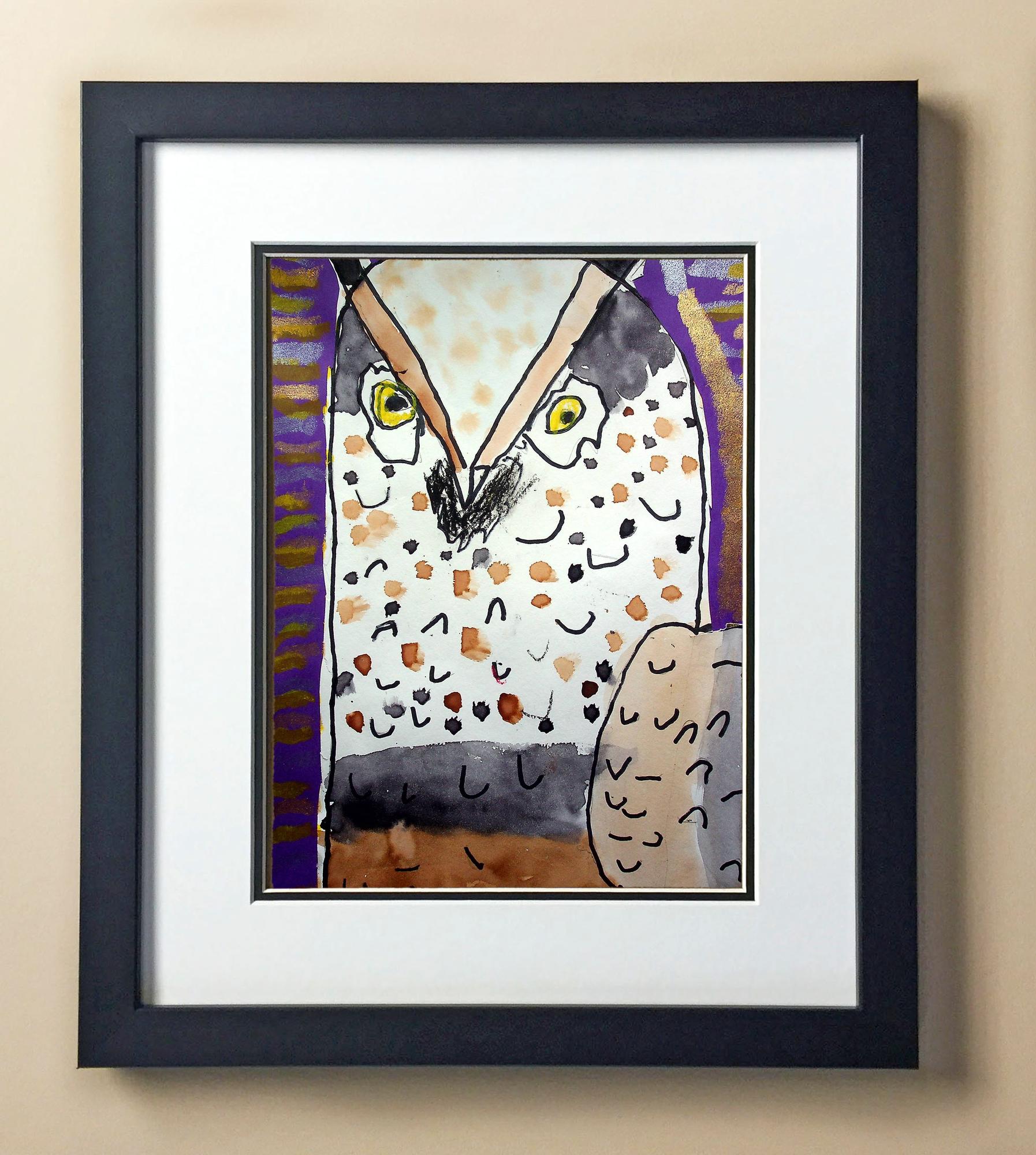 Included with the purchase is the Students Artwork, Frame, double matboard, shatter proof plexiglass, and a ready to hang backerboard with turnbuttons