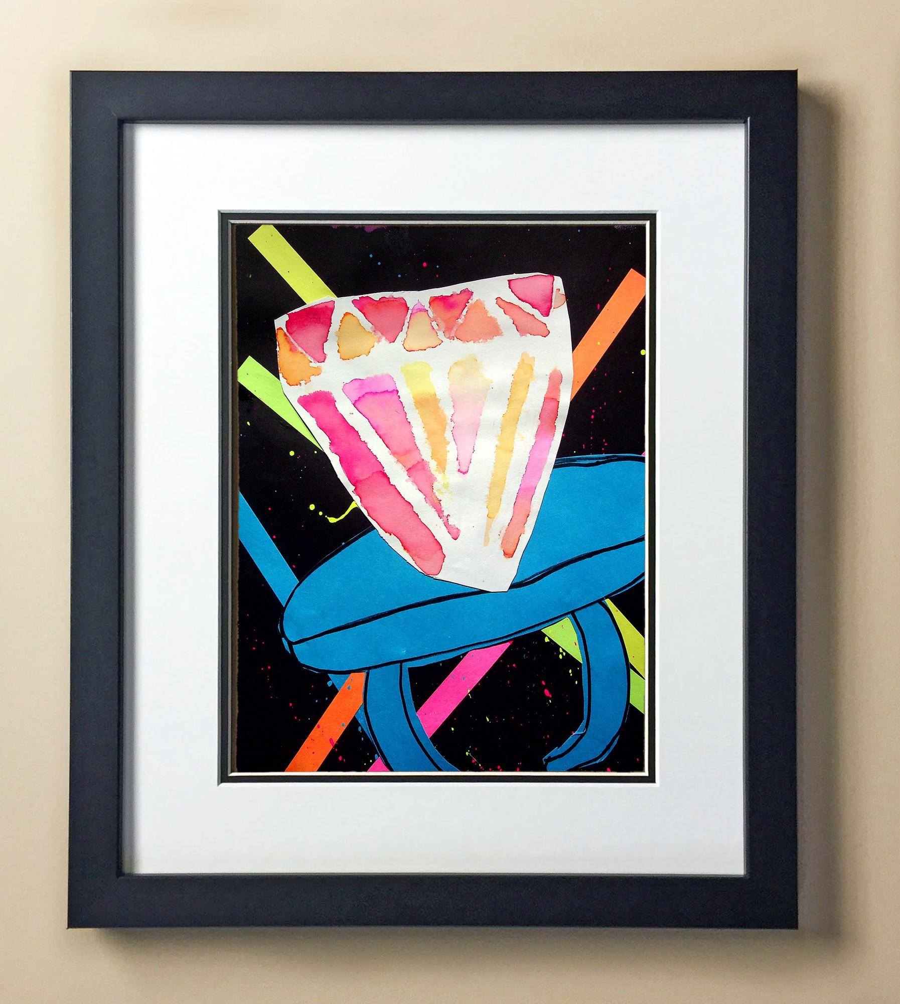 Included with the purchase is the Students Artwork, Frame, double matboard, shatter proof plexiglass, and a ready to hang backerboard with turnbuttons