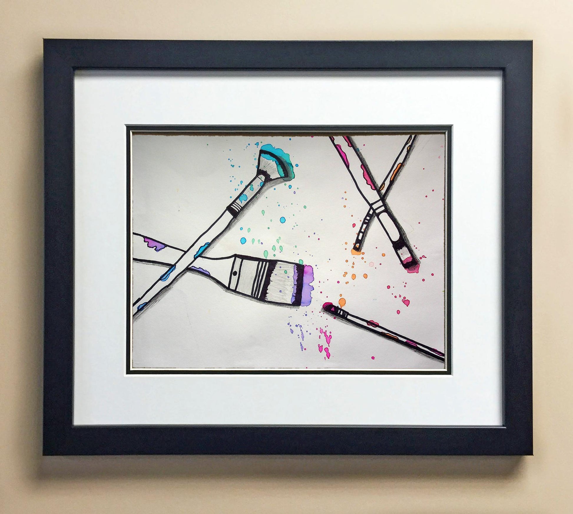 Included with the purchase is the Students Artwork, Frame, double matboard, shatter proof plexiglass, and a ready to hang backerboard with turnbuttons