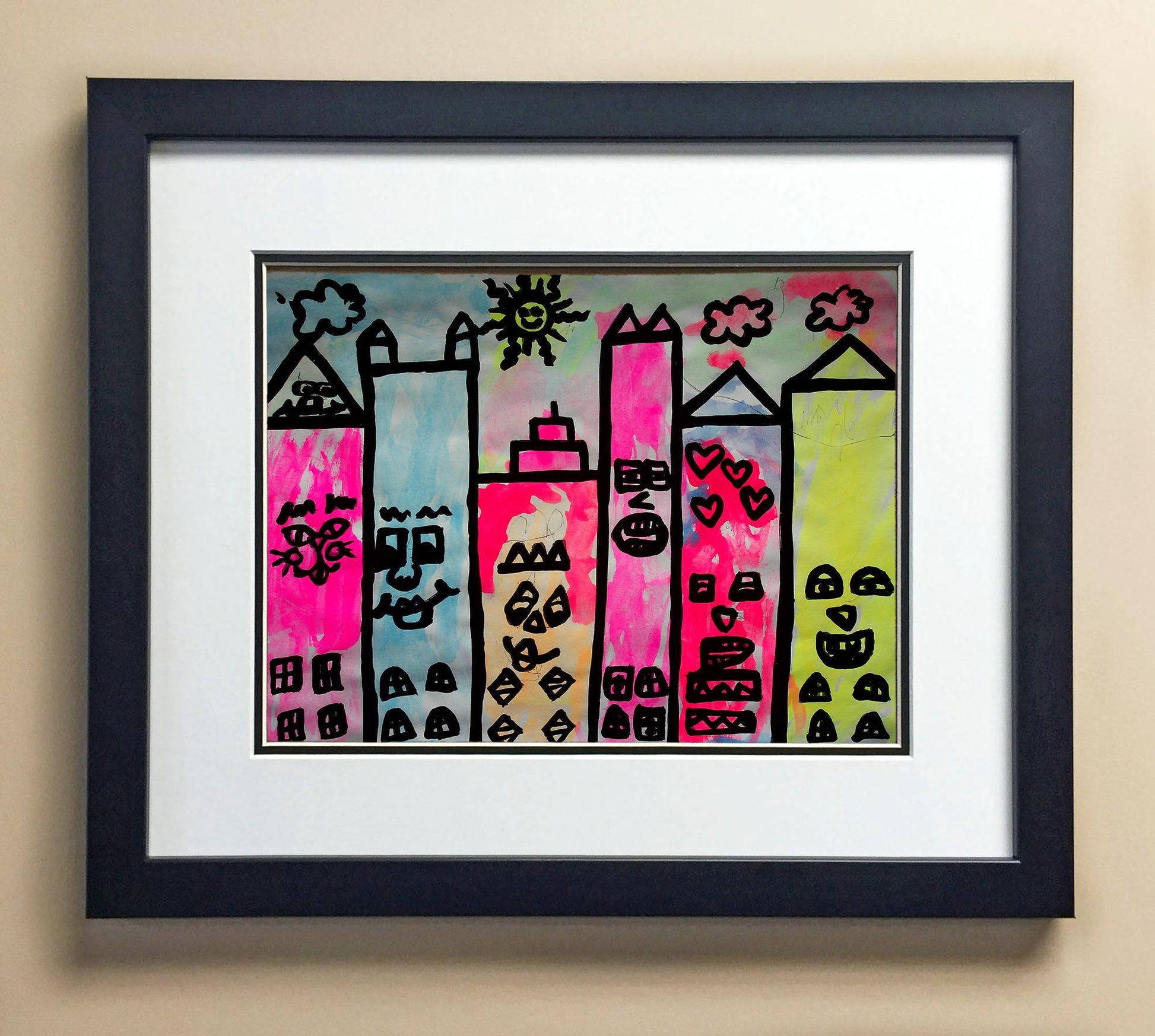 Included with the purchase is the Students Artwork, Frame, double matboard, shatter proof plexiglass, and a ready to hang backerboard with turnbuttons