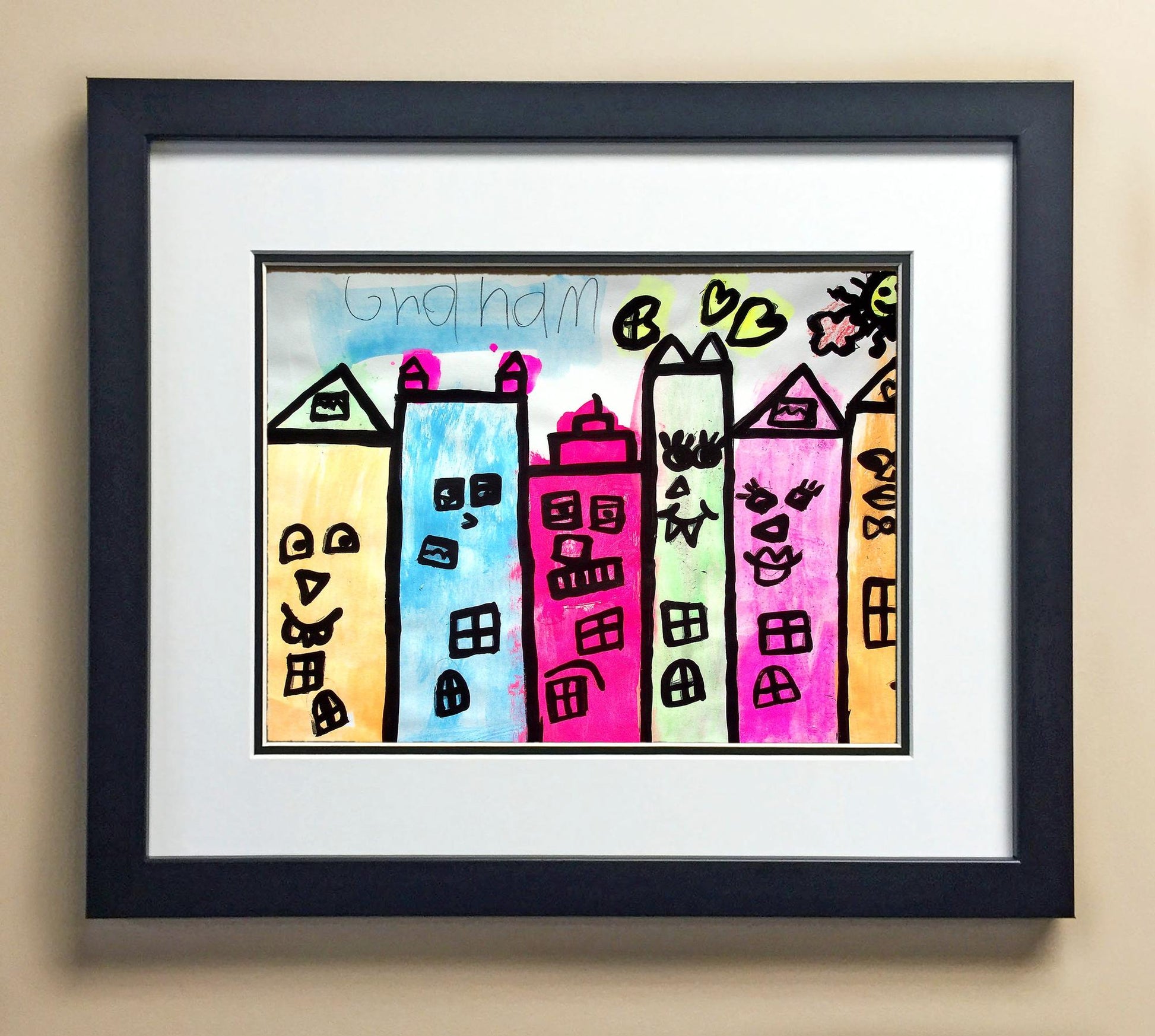 Included with the purchase is the Students Artwork, Frame, double matboard, shatter proof plexiglass, and a ready to hang backerboard with turnbuttons