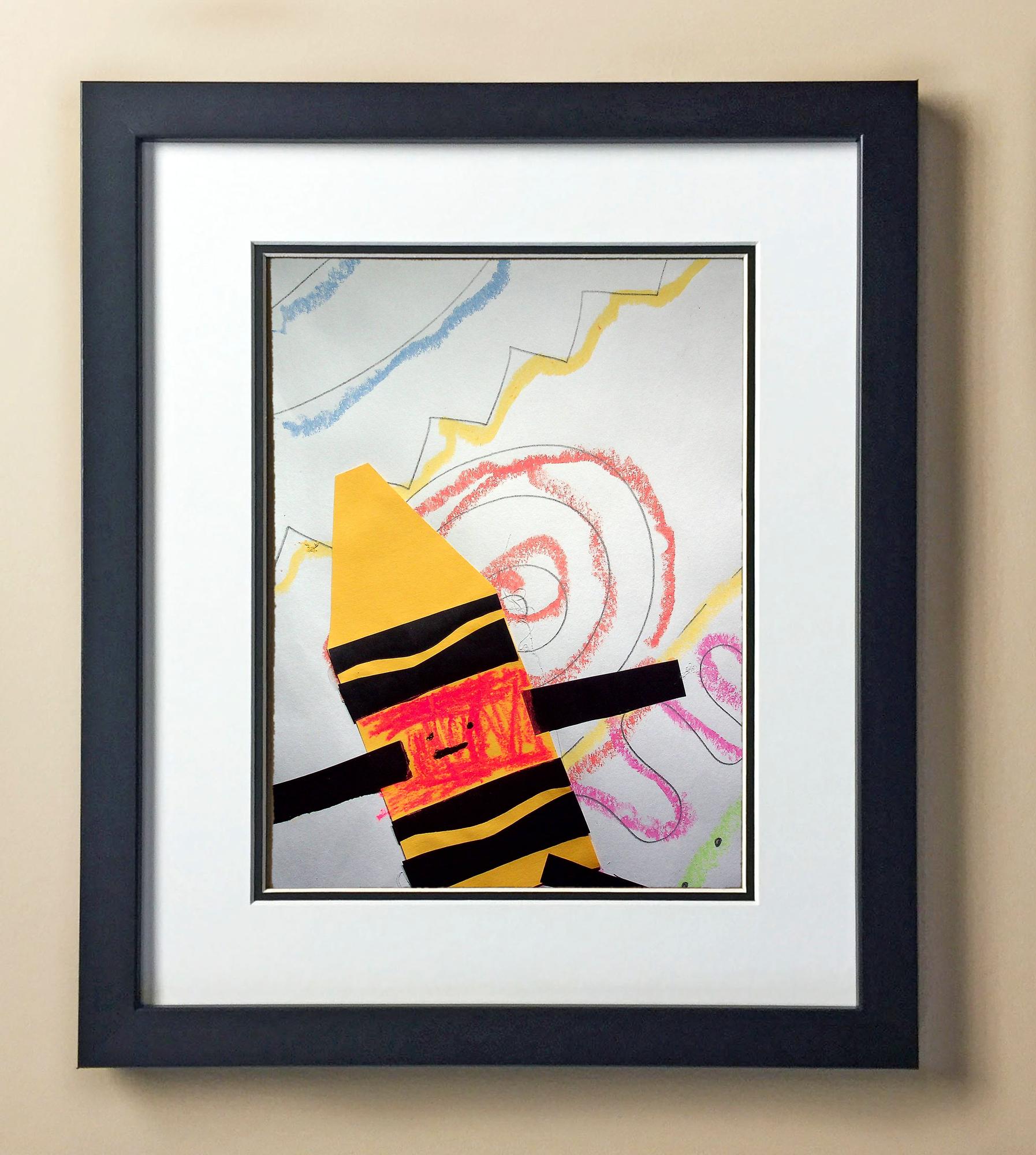 Included with the purchase is the Students Artwork, Frame, double matboard, shatter proof plexiglass, and a ready to hang backerboard with turnbuttons