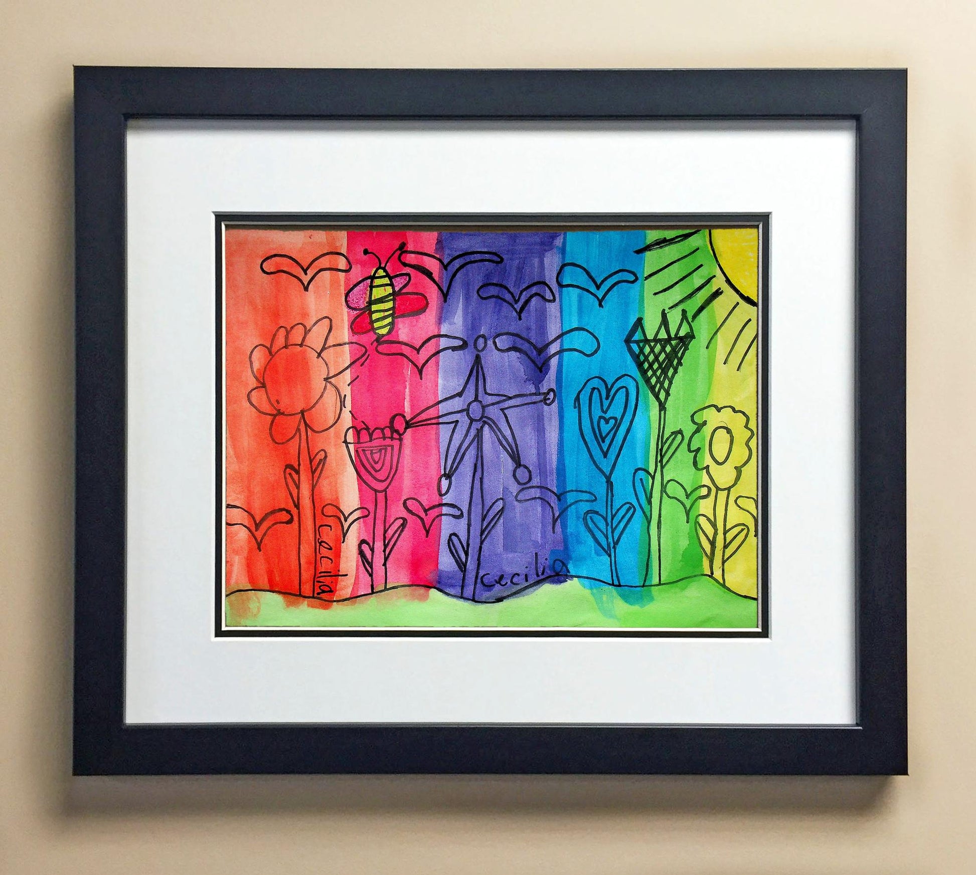 Included with the purchase is the Students Artwork, Frame, double matboard, shatter proof plexiglass, and a ready to hang backerboard with turnbuttons
