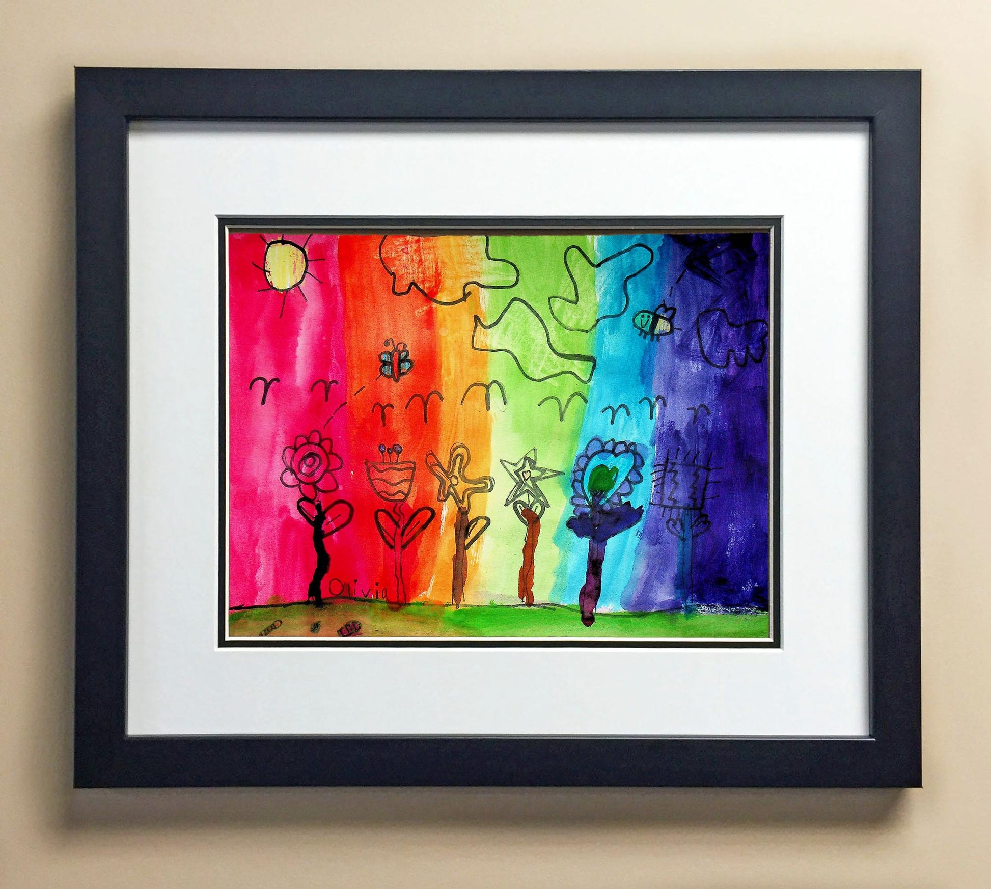 Included with the purchase is the Students Artwork, Frame, double matboard, shatter proof plexiglass, and a ready to hang backerboard with turnbuttons