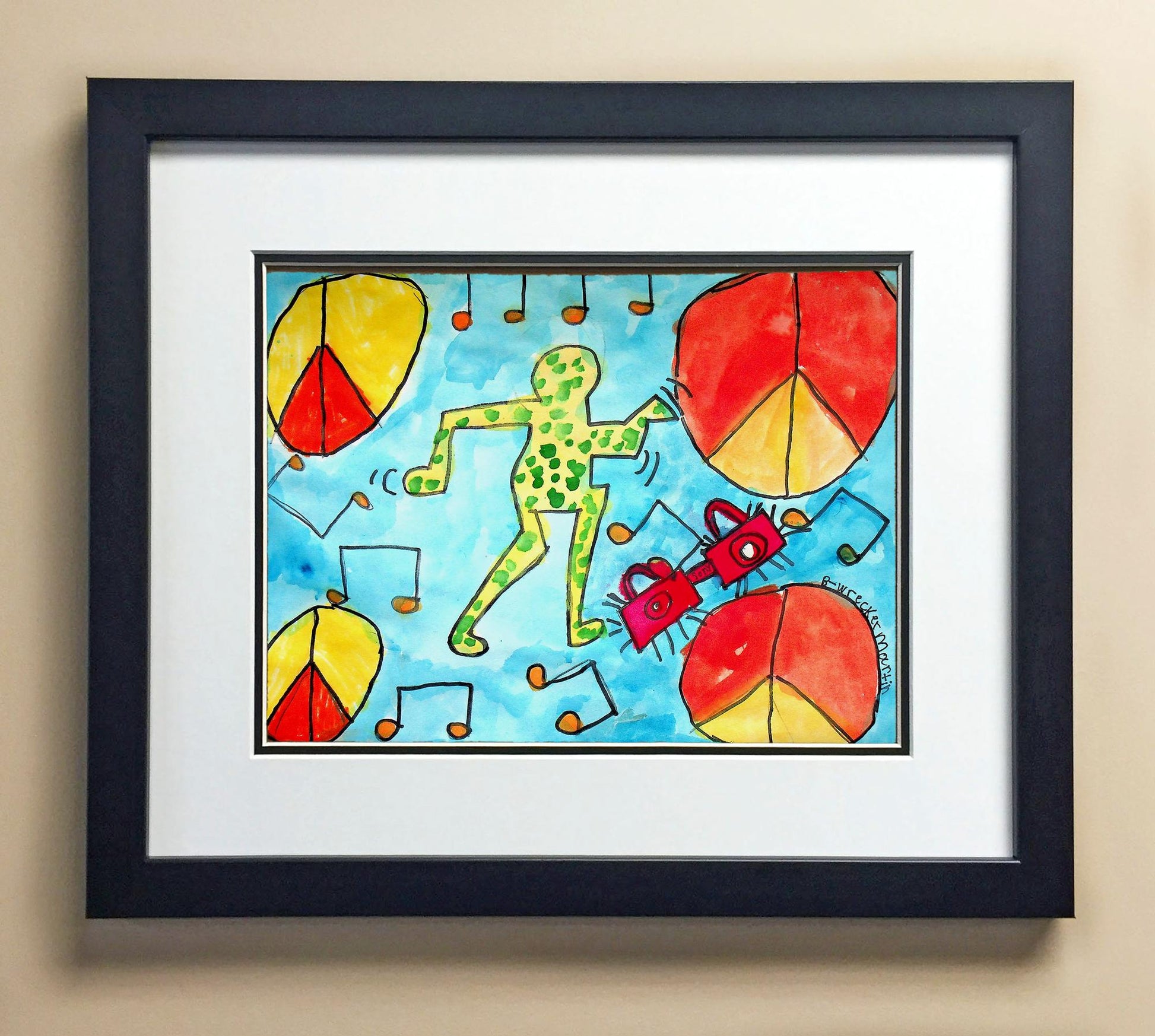 Included with the purchase is the Students Artwork, Frame, double matboard, shatter proof plexiglass, and a ready to hang backerboard with turnbuttons