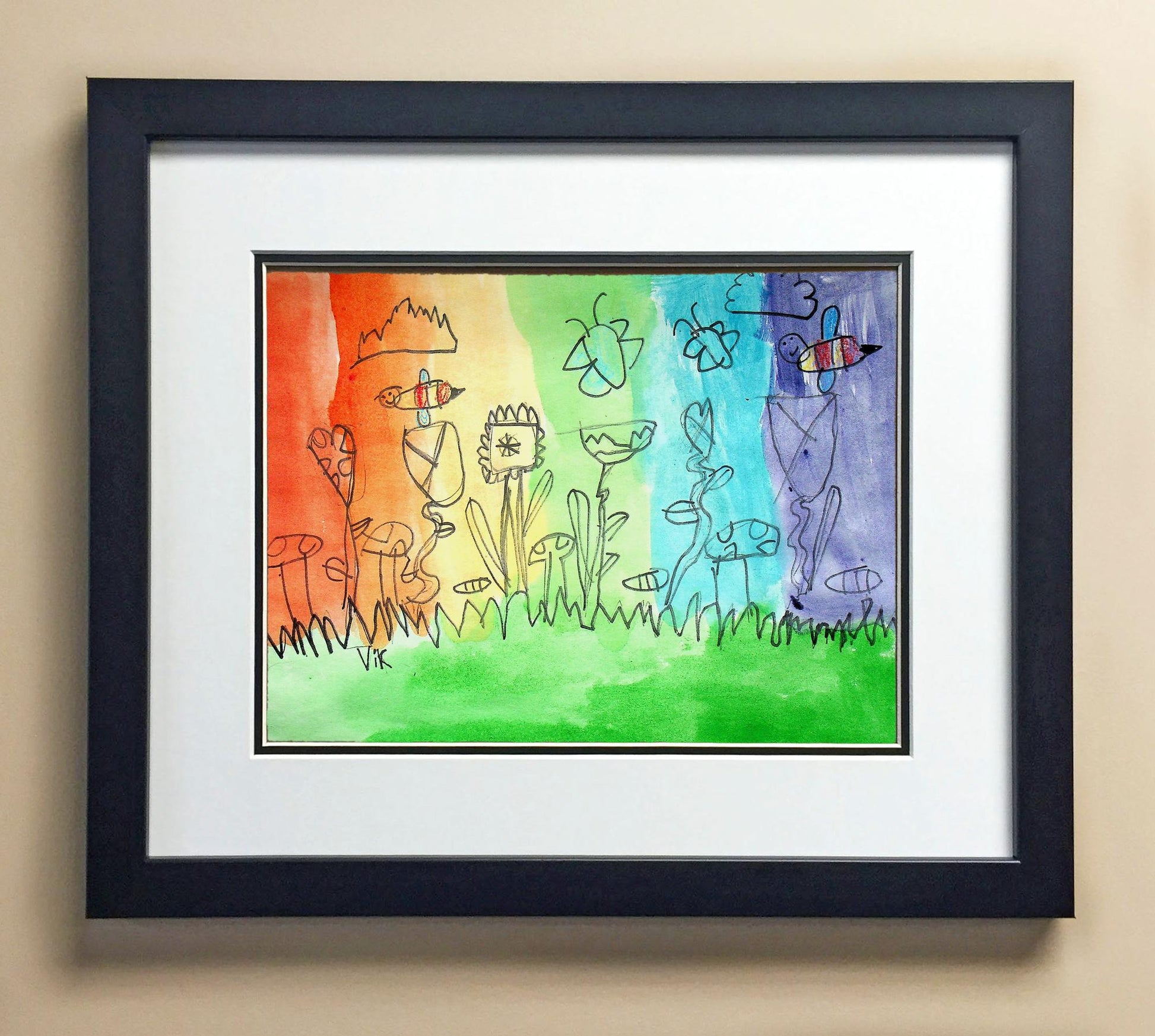Included with the purchase is the Students Artwork, Frame, double matboard, shatter proof plexiglass, and a ready to hang backerboard with turnbuttons