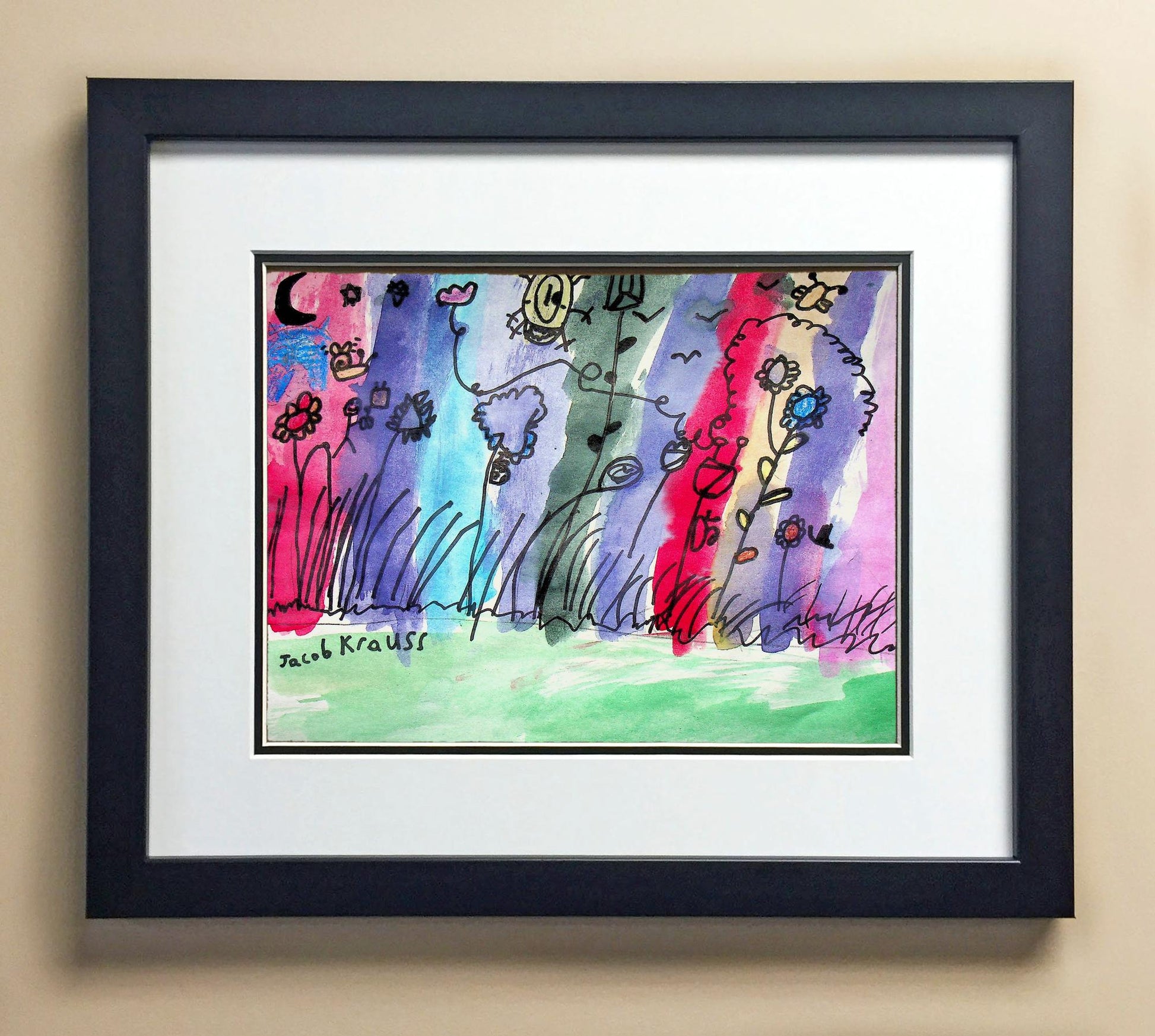 Included with the purchase is the Students Artwork, Frame, double matboard, shatter proof plexiglass, and a ready to hang backerboard with turnbuttons
