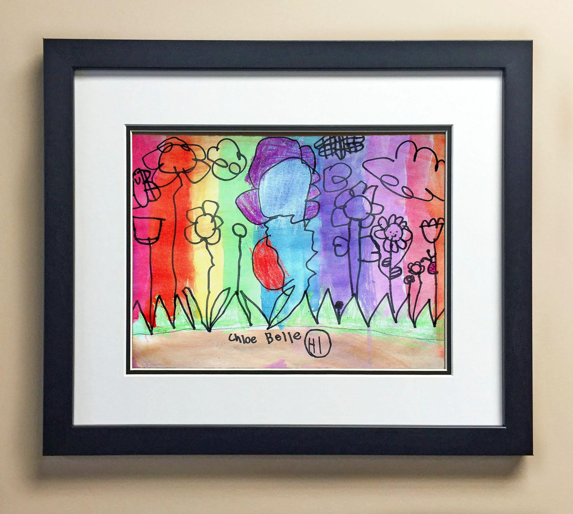 Included with the purchase is the Students Artwork, Frame, double matboard, shatter proof plexiglass, and a ready to hang backerboard with turnbuttons