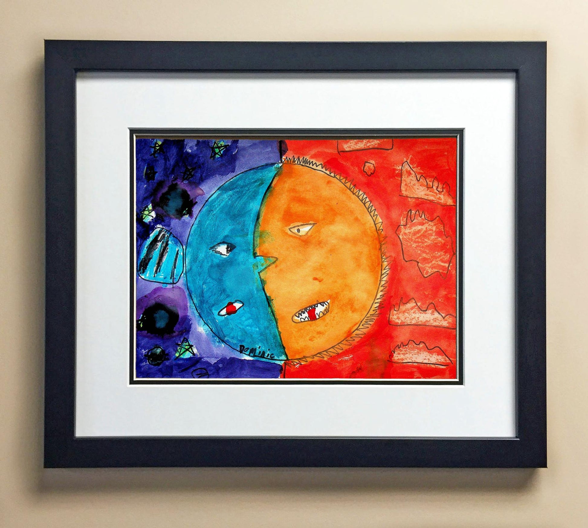 Included with the purchase is the Students Artwork, Frame, double matboard, shatter proof plexiglass, and a ready to hang backerboard with turnbuttons