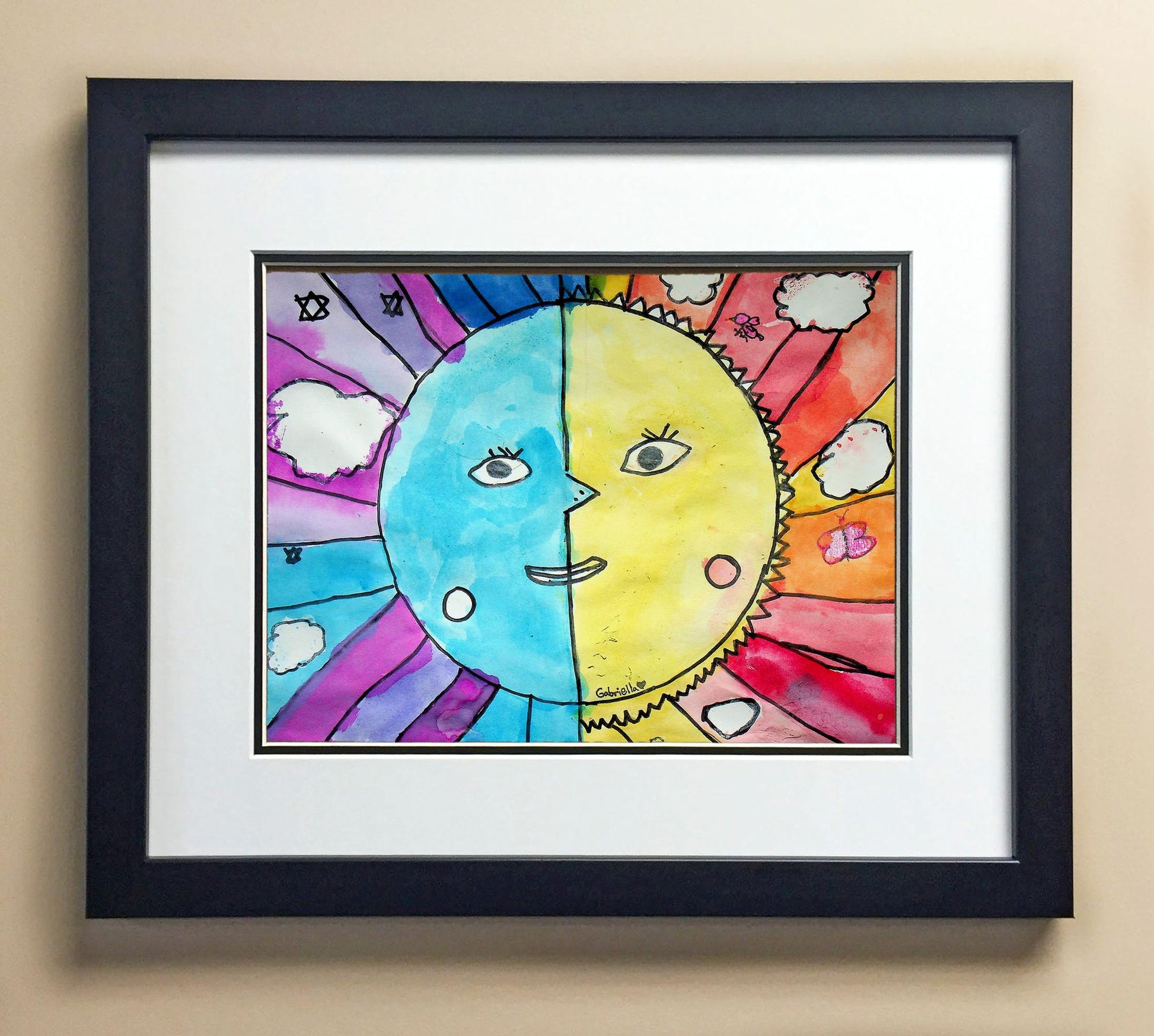 Included with the purchase is the Students Artwork, Frame, double matboard, shatter proof plexiglass, and a ready to hang backerboard with turnbuttons