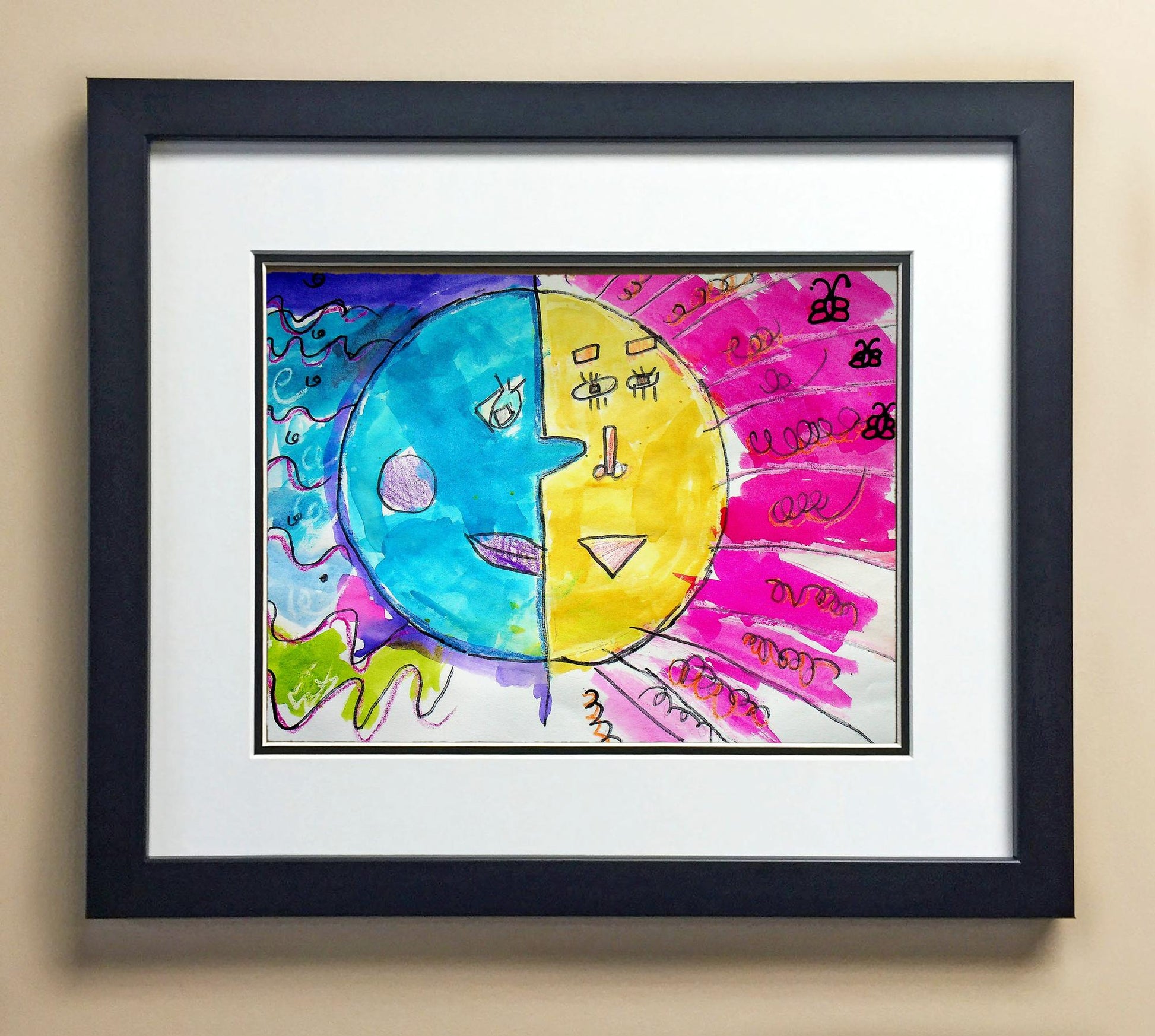 Included with the purchase is the Students Artwork, Frame, double matboard, shatter proof plexiglass, and a ready to hang backerboard with turnbuttons