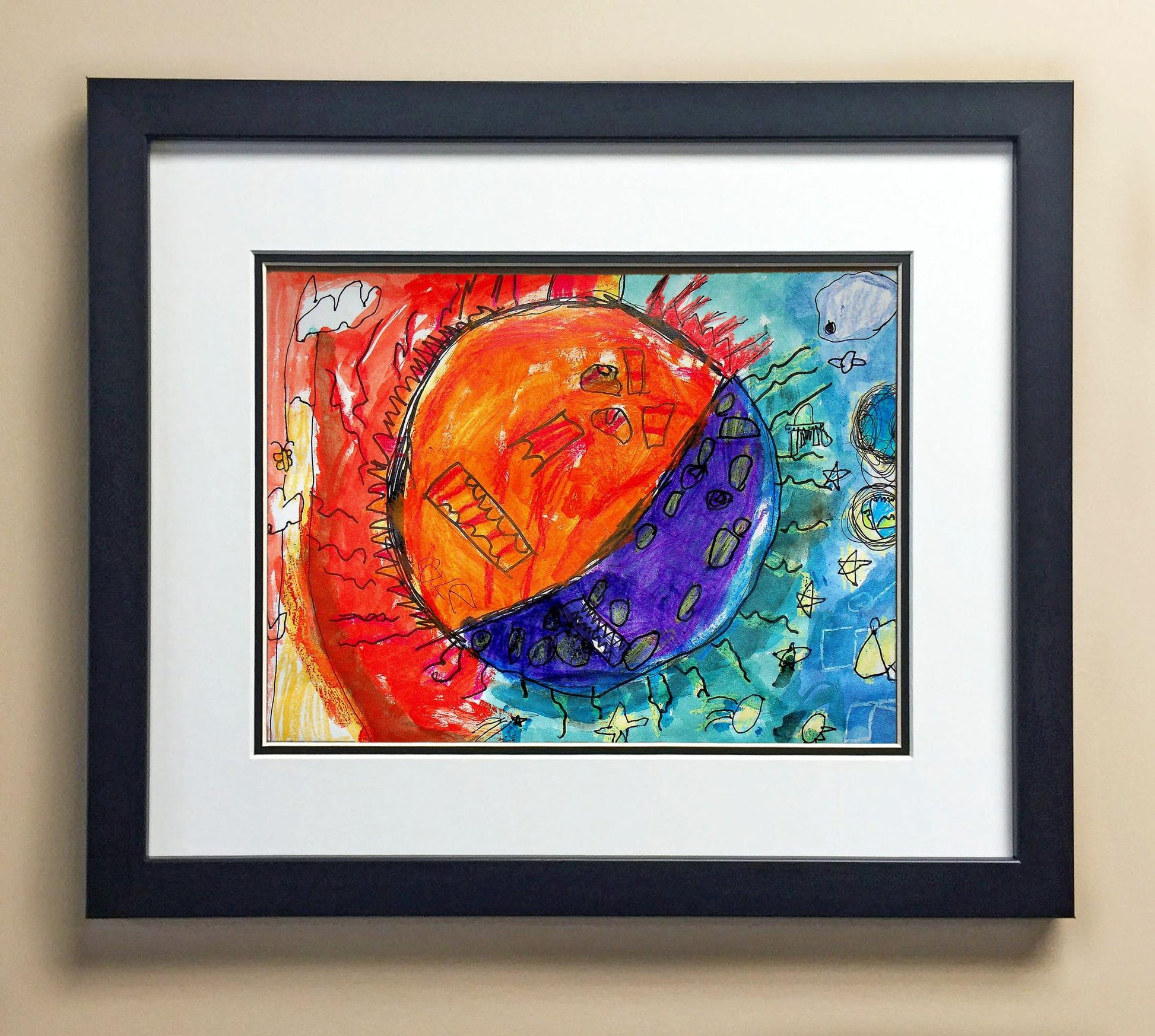 Included with the purchase is the Students Artwork, Frame, double matboard, shatter proof plexiglass, and a ready to hang backerboard with turnbuttons