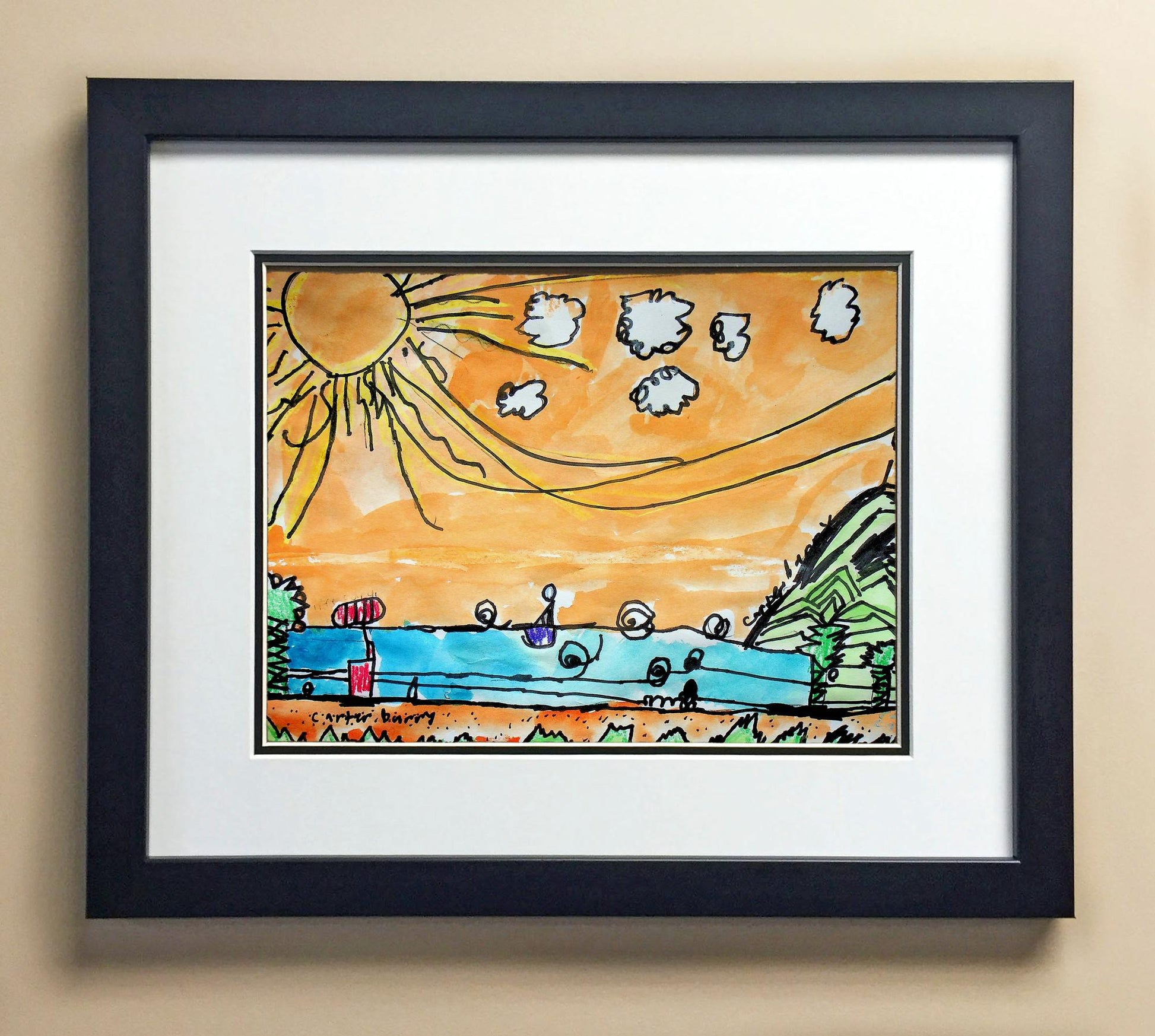 Included with the purchase is the Students Artwork, Frame, double matboard, shatter proof plexiglass, and a ready to hang backerboard with turnbuttons