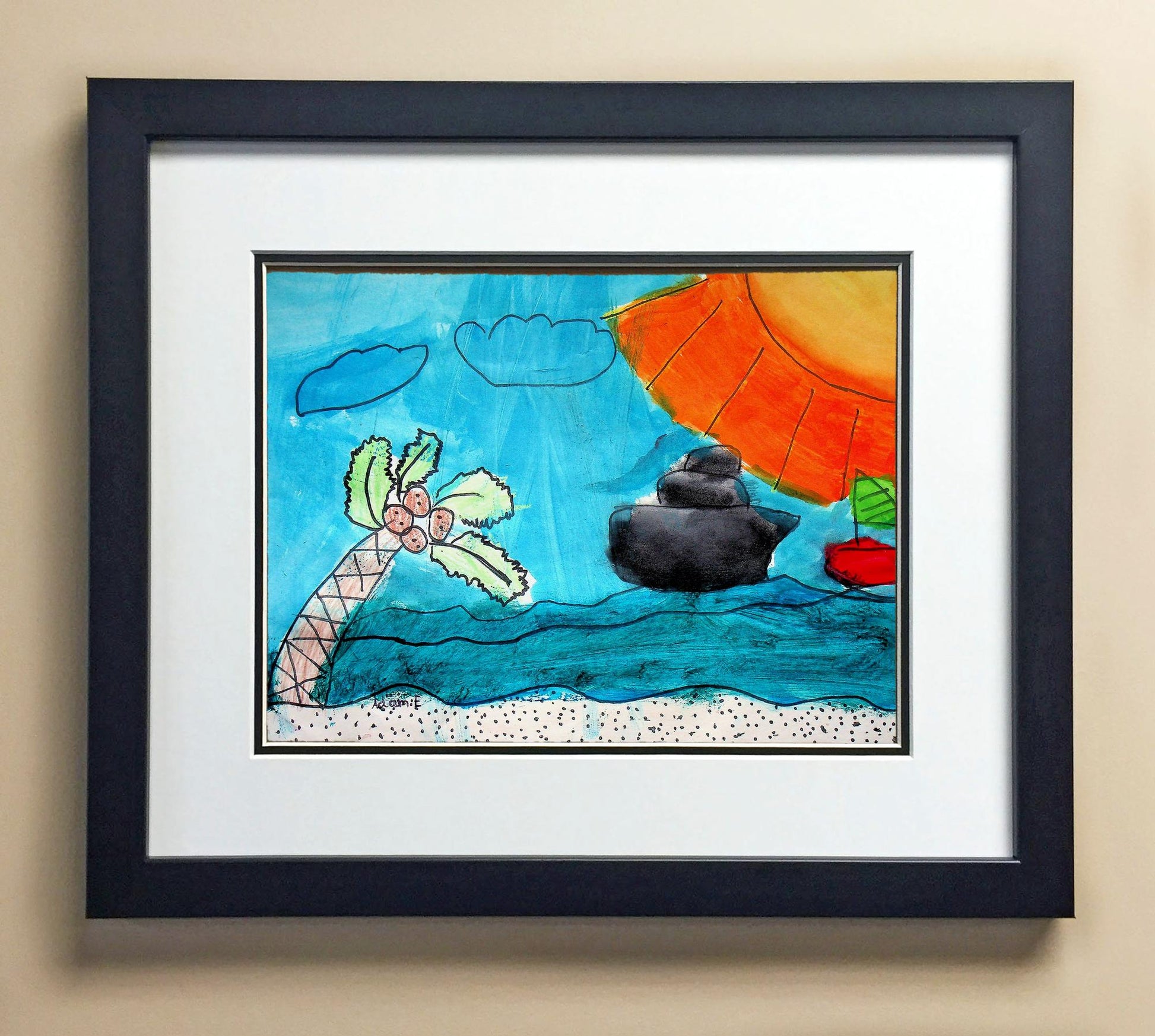 Included with the purchase is the Students Artwork, Frame, double matboard, shatter proof plexiglass, and a ready to hang backerboard with turnbuttons