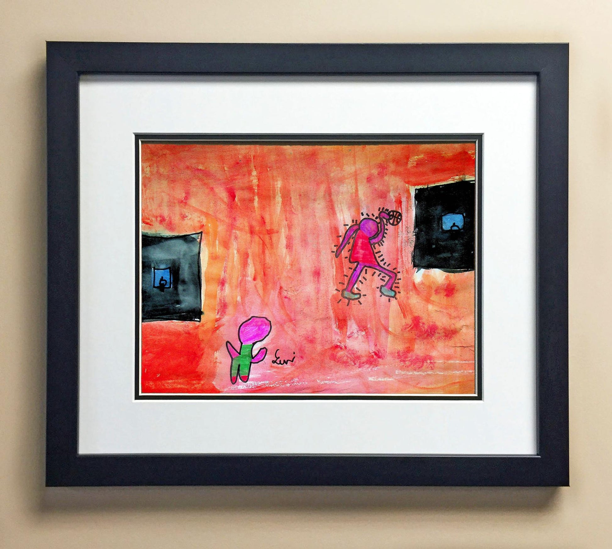 Included with the purchase is the Students Artwork, Frame, double matboard, shatter proof plexiglass, and a ready to hang backerboard with turnbuttons