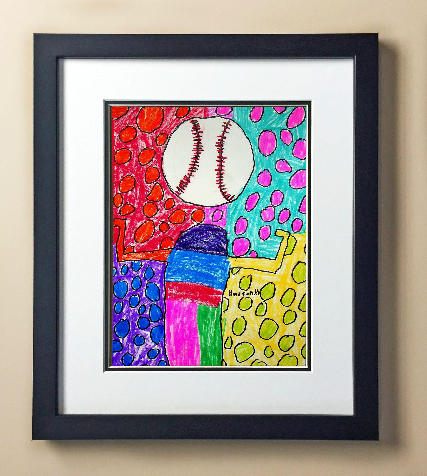 Included with the purchase is the Students Artwork, Frame, double matboard, shatter proof plexiglass, and a ready to hang backerboard with turnbuttons