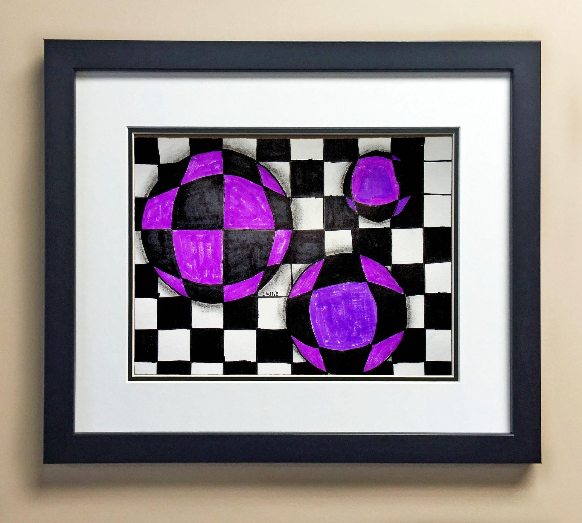 Included with the purchase is the Students Artwork, Frame, double matboard, shatter proof plexiglass, and a ready to hang backerboard with turnbuttons
