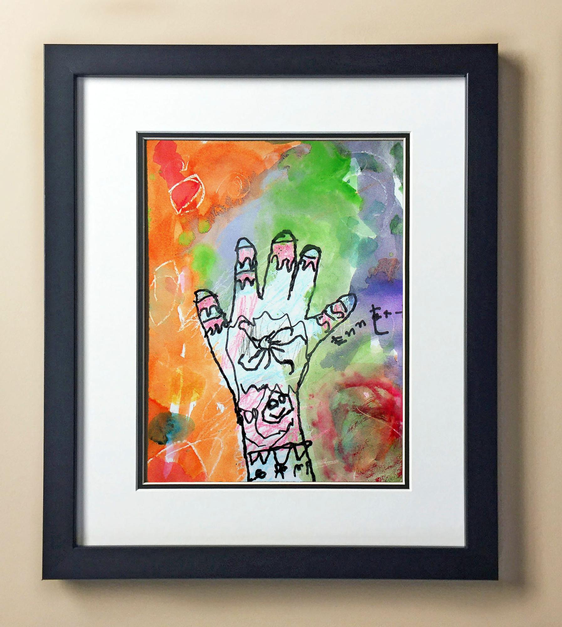 Included with the purchase is the Students Artwork, Frame, double matboard, shatter proof plexiglass, and a ready to hang backerboard with turnbuttons