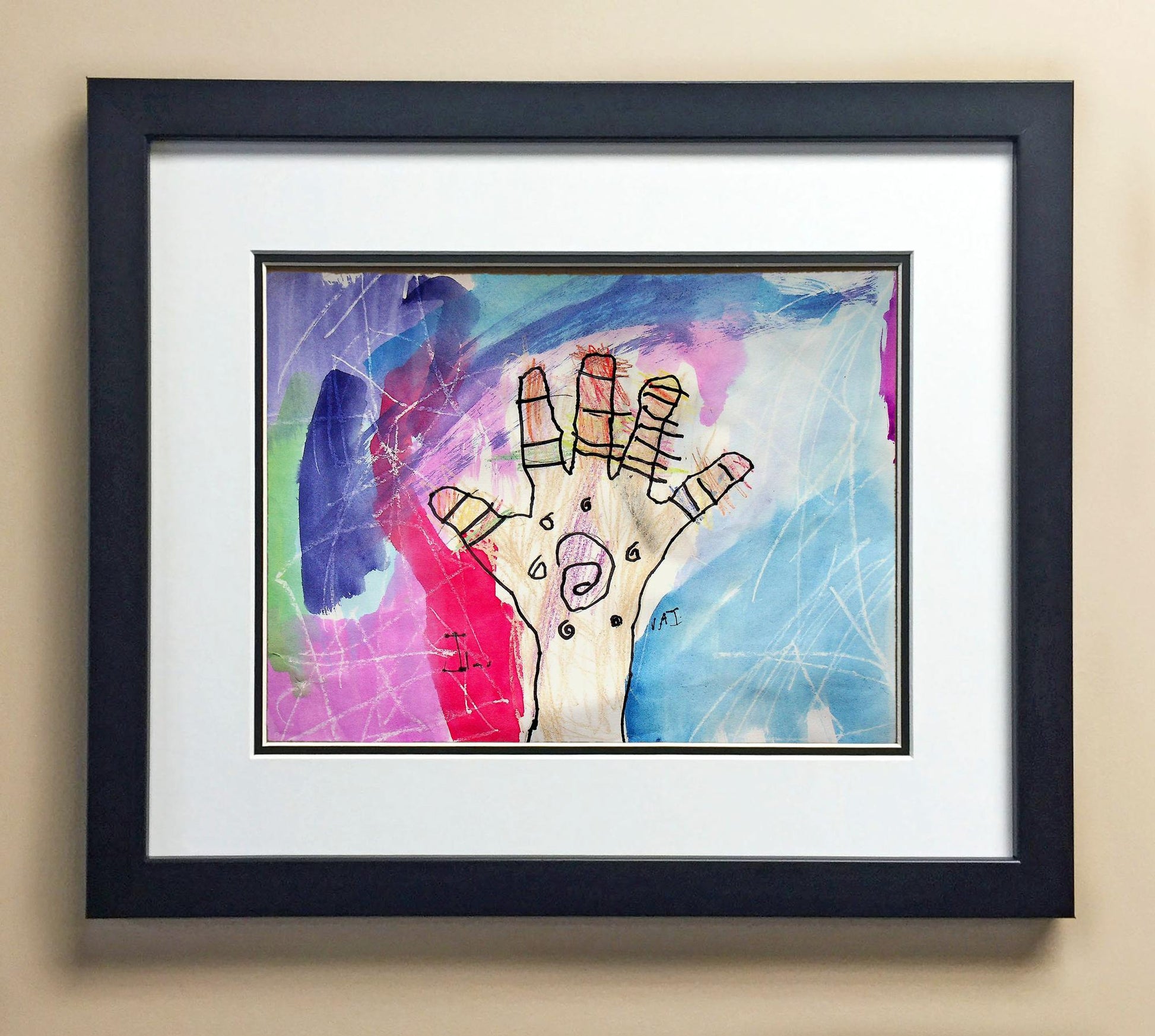 Included with the purchase is the Students Artwork, Frame, double matboard, shatter proof plexiglass, and a ready to hang backerboard with turnbuttons