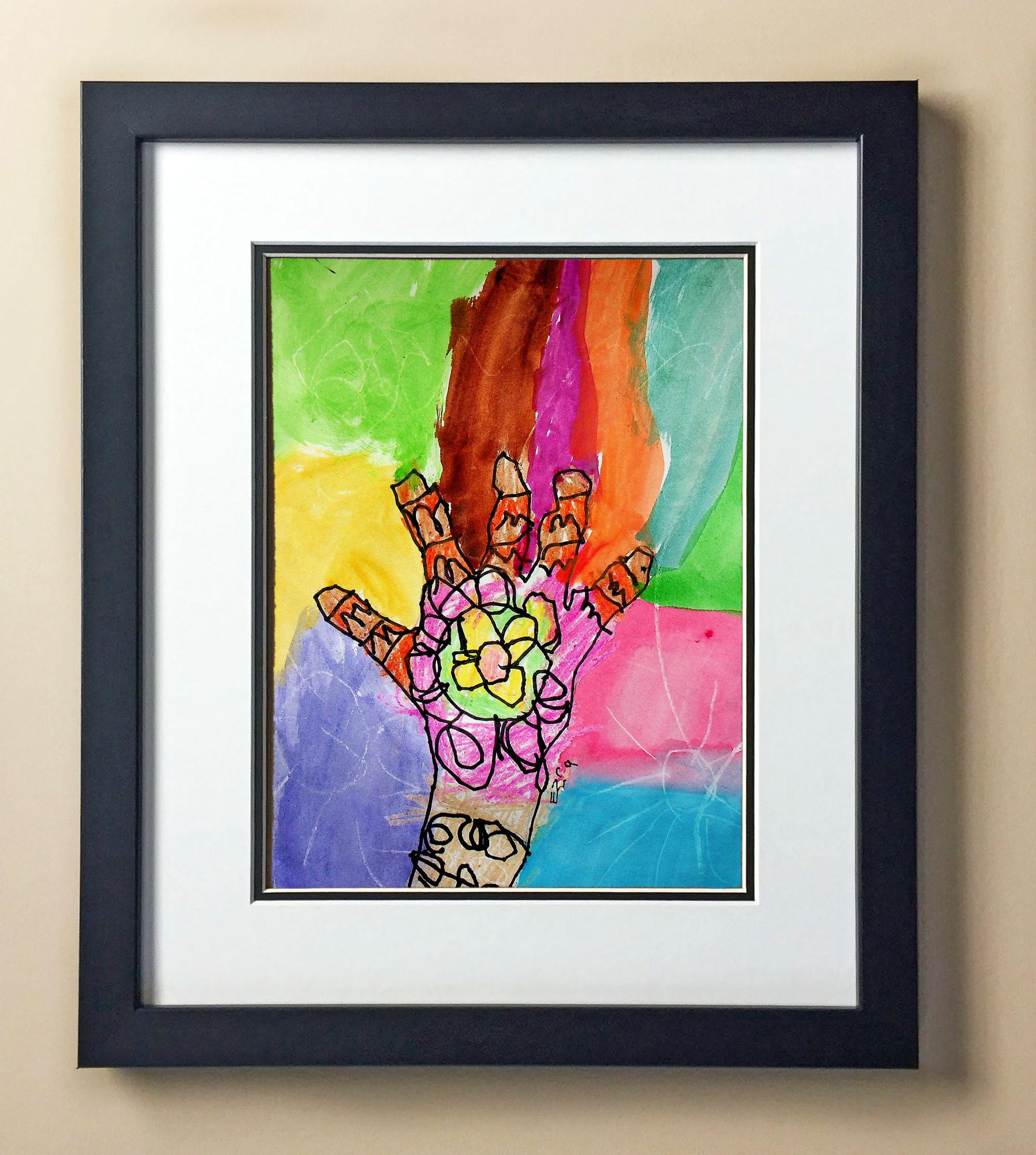 Included with the purchase is the Students Artwork, Frame, double matboard, shatter proof plexiglass, and a ready to hang backerboard with turnbuttons