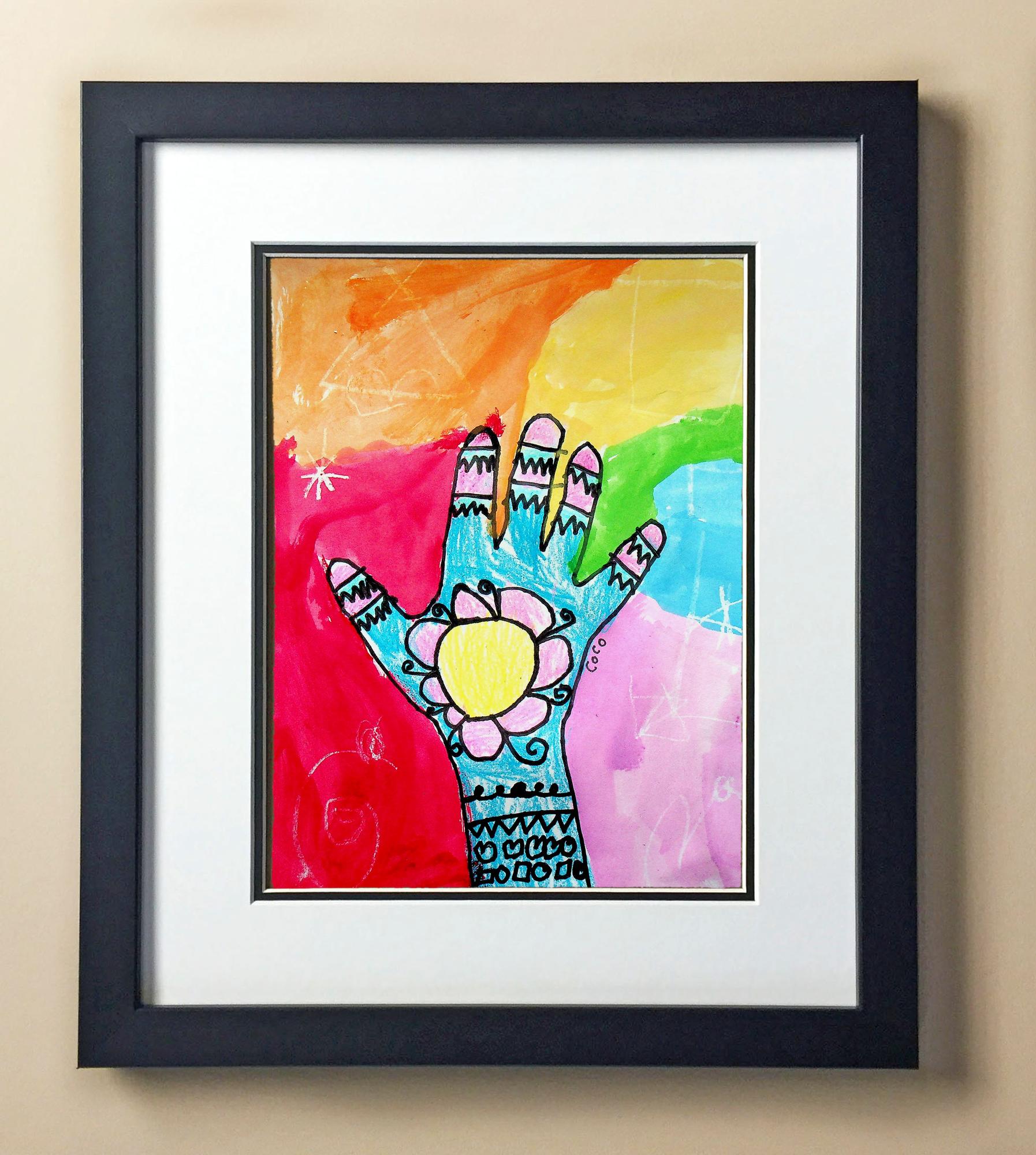 Included with the purchase is the Students Artwork, Frame, double matboard, shatter proof plexiglass, and a ready to hang backerboard with turnbuttons