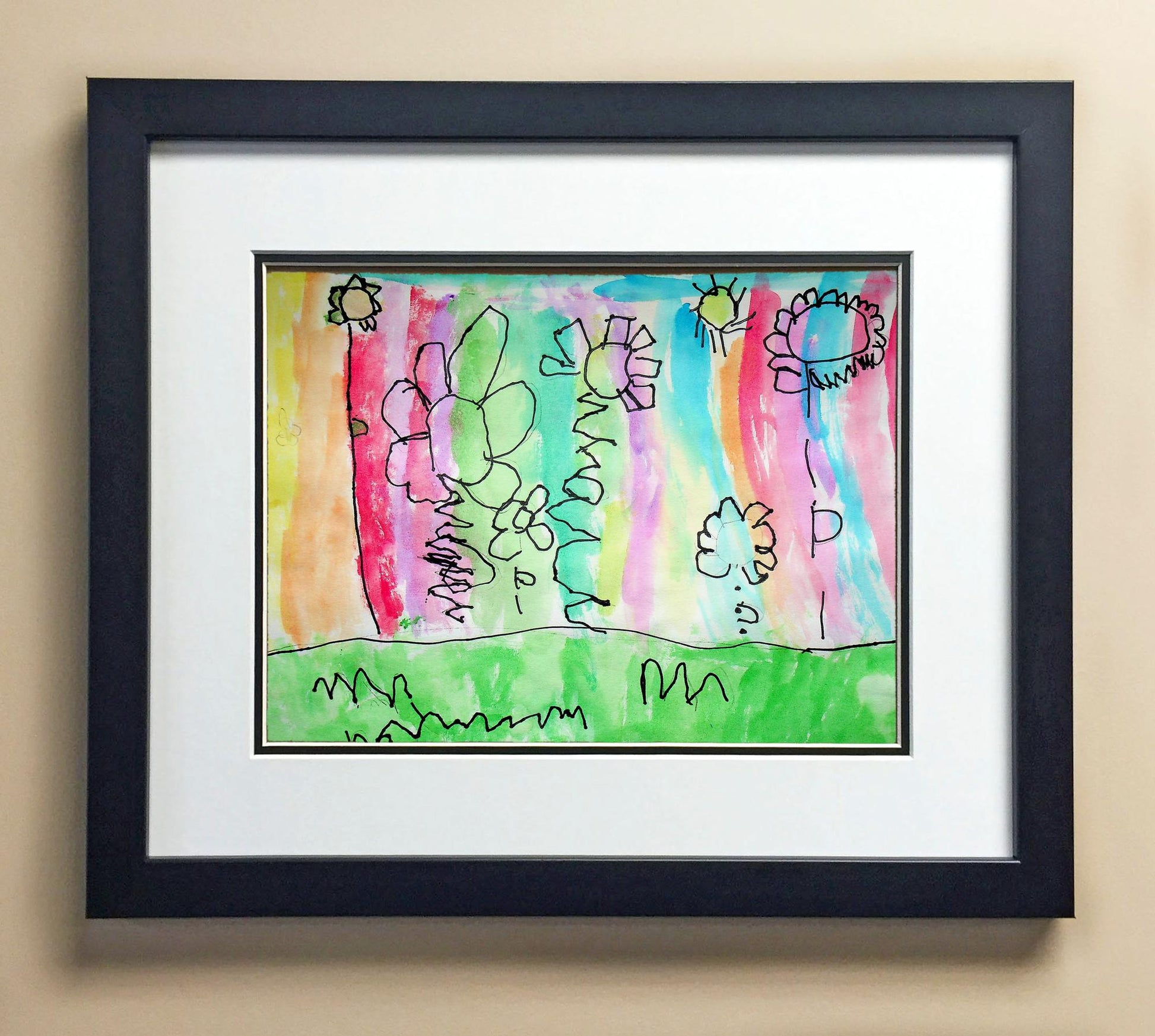 Included with the purchase is the Students Artwork, Frame, double matboard, shatter proof plexiglass, and a ready to hang backerboard with turnbuttons