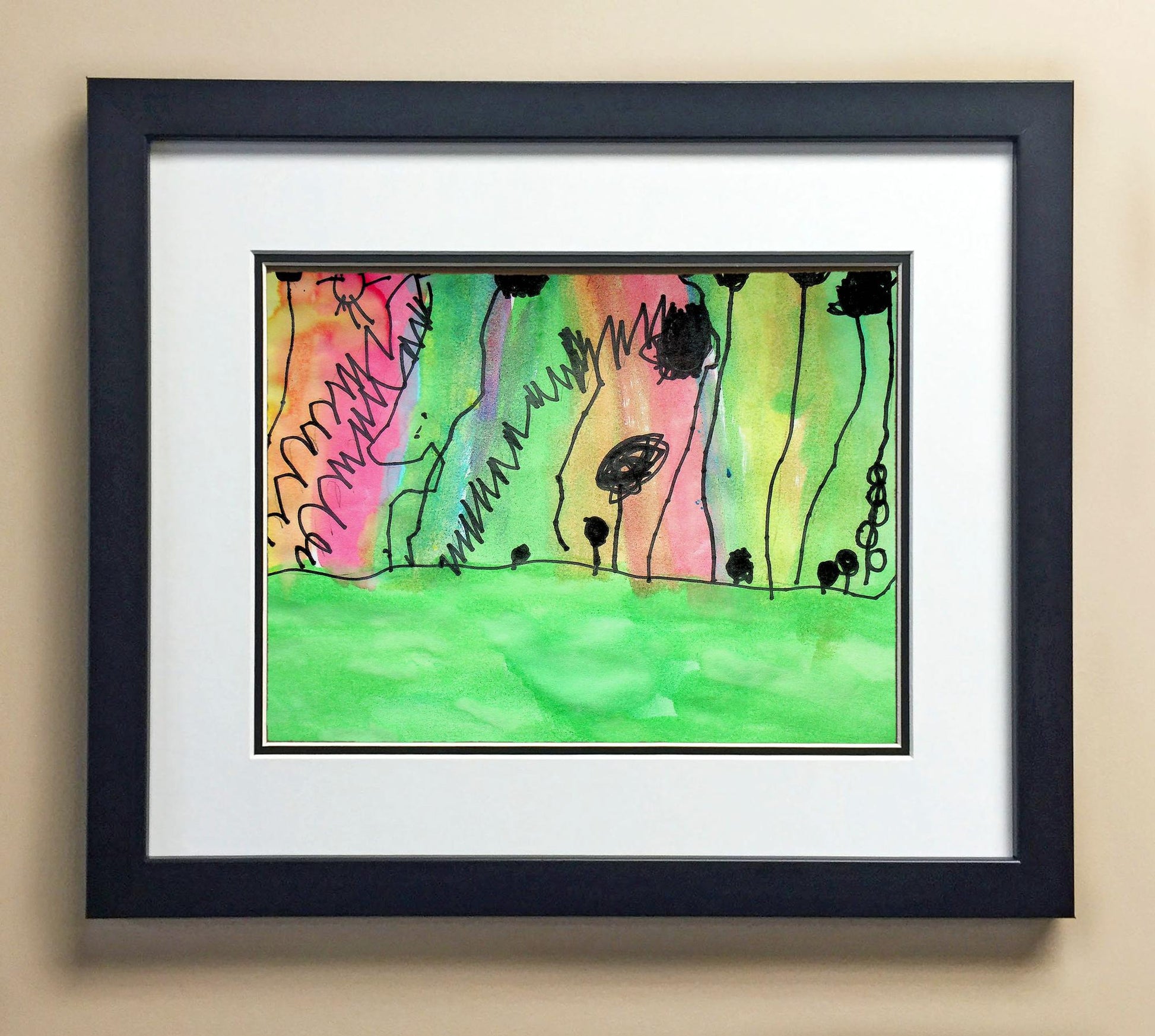 Included with the purchase is the Students Artwork, Frame, double matboard, shatter proof plexiglass, and a ready to hang backerboard with turnbuttons