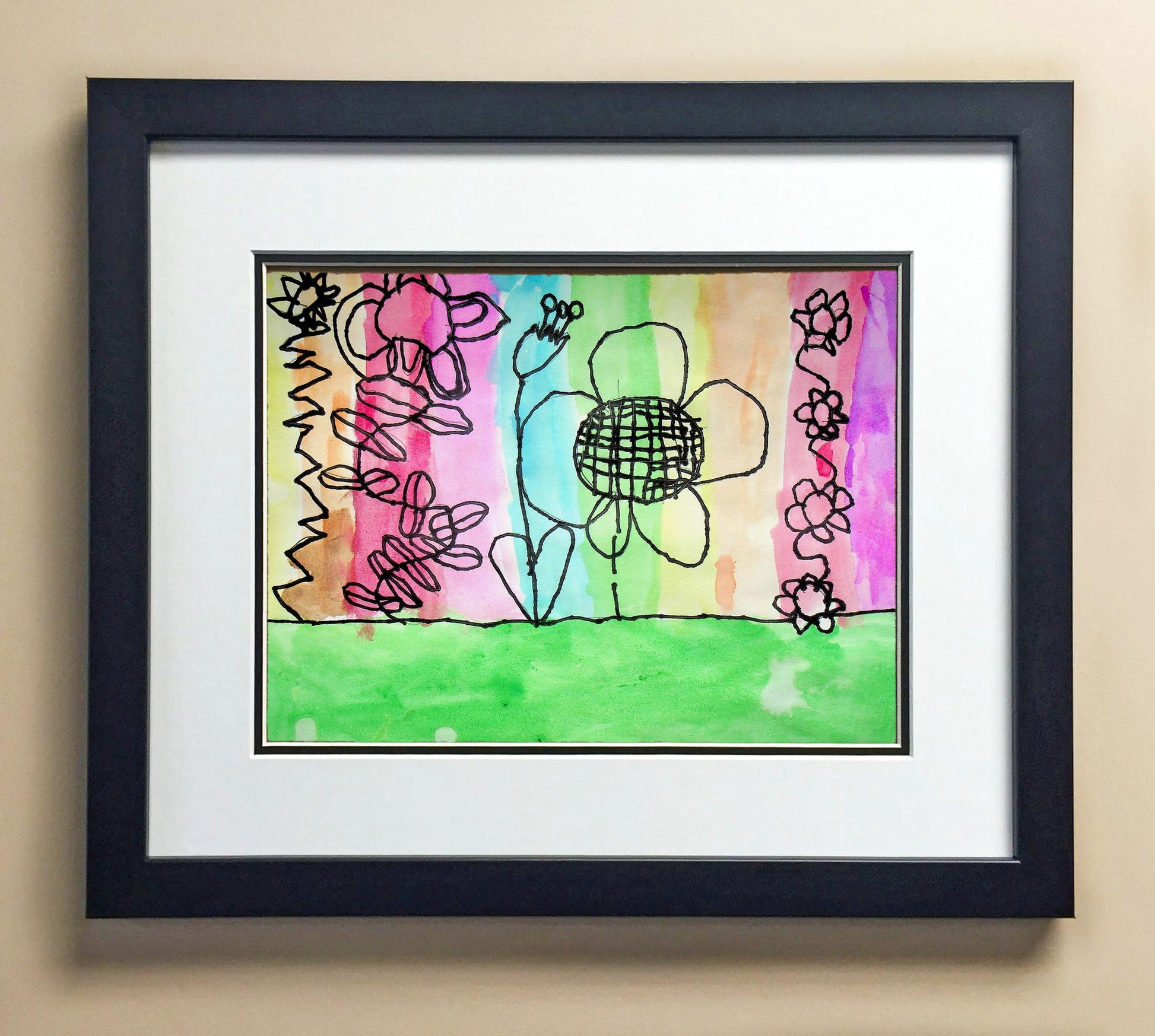 Included with the purchase is the Students Artwork, Frame, double matboard, shatter proof plexiglass, and a ready to hang backerboard with turnbuttons