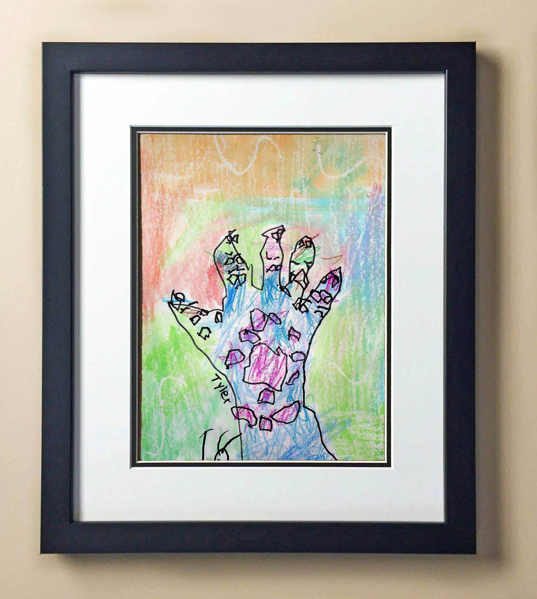 Included with the purchase is the Students Artwork, Frame, double matboard, shatter proof plexiglass, and a ready to hang backerboard with turnbuttons