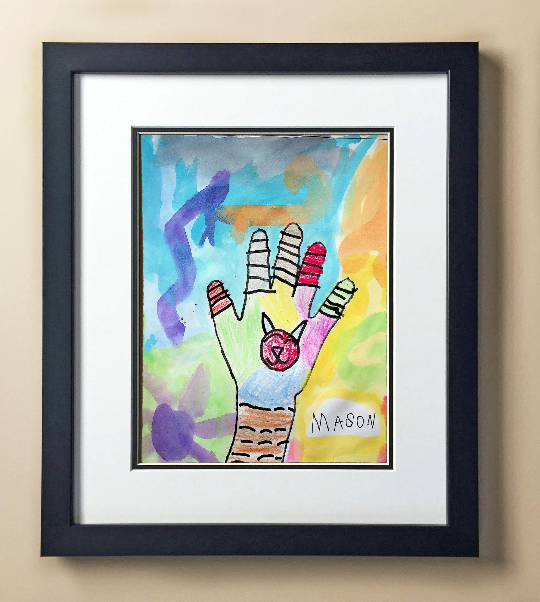 Included with the purchase is the Students Artwork, Frame, double matboard, shatter proof plexiglass, and a ready to hang backerboard with turnbuttons