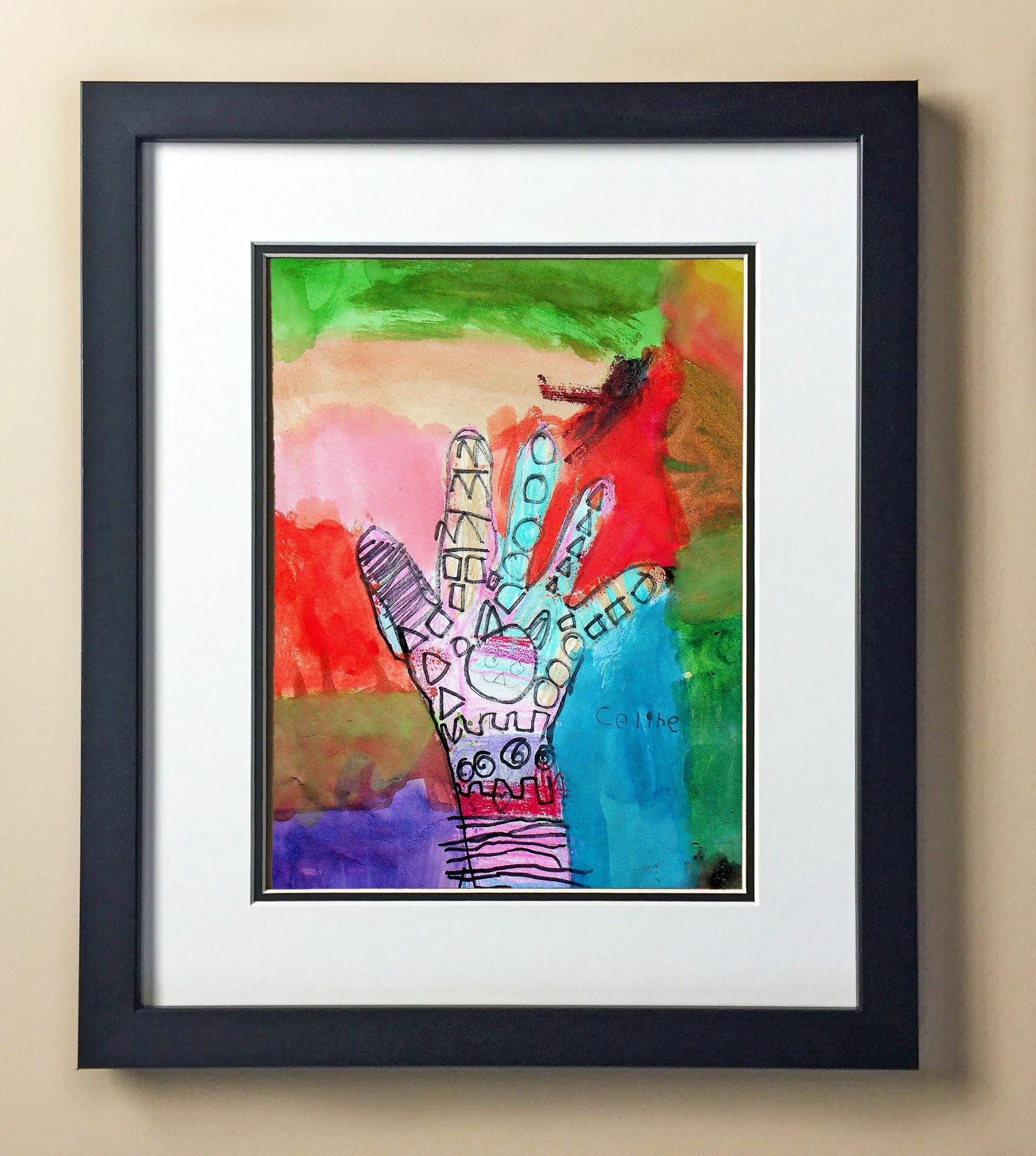Included with the purchase is the Students Artwork, Frame, double matboard, shatter proof plexiglass, and a ready to hang backerboard with turnbuttons