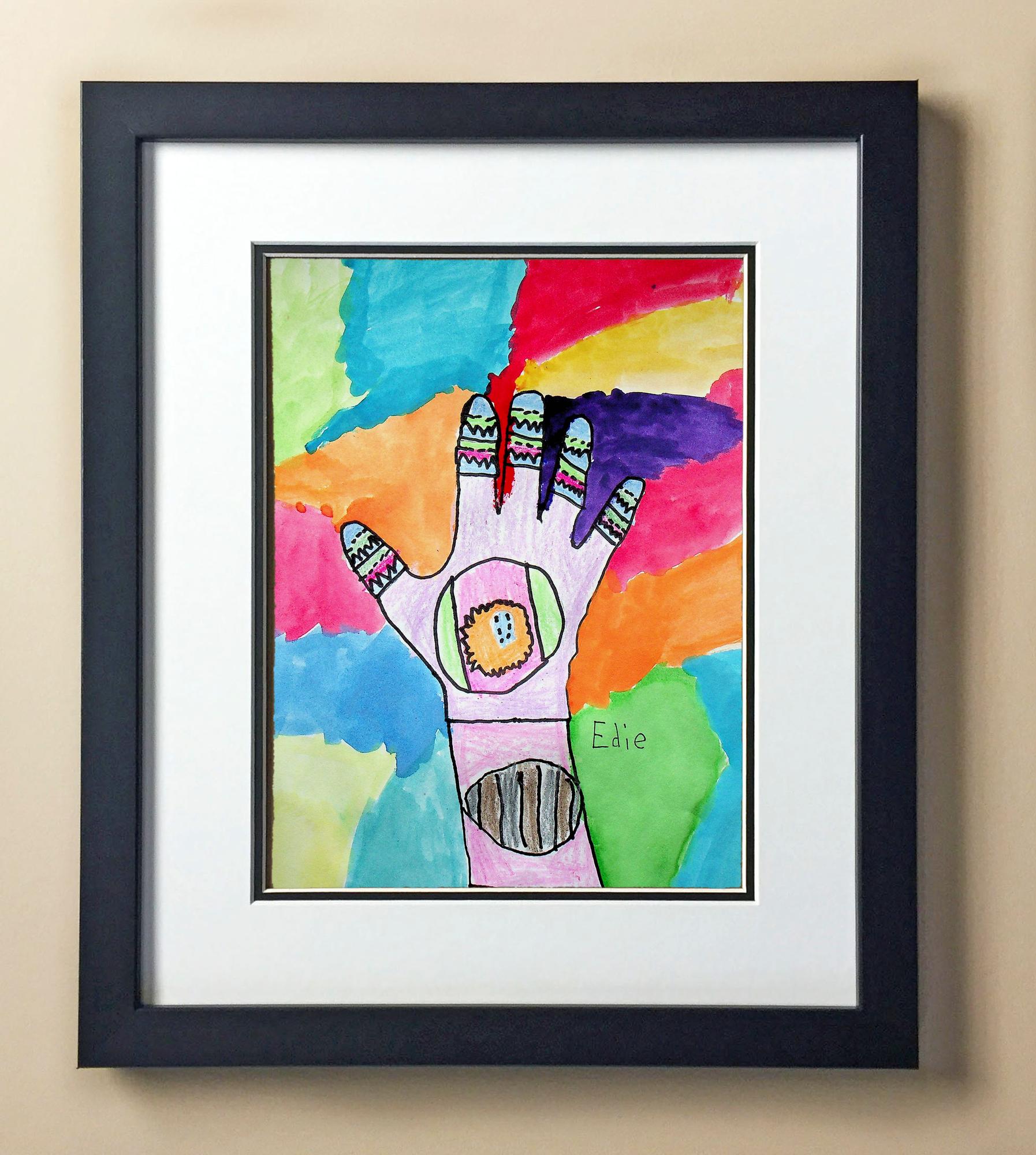 Included with the purchase is the Students Artwork, Frame, double matboard, shatter proof plexiglass, and a ready to hang backerboard with turnbuttons