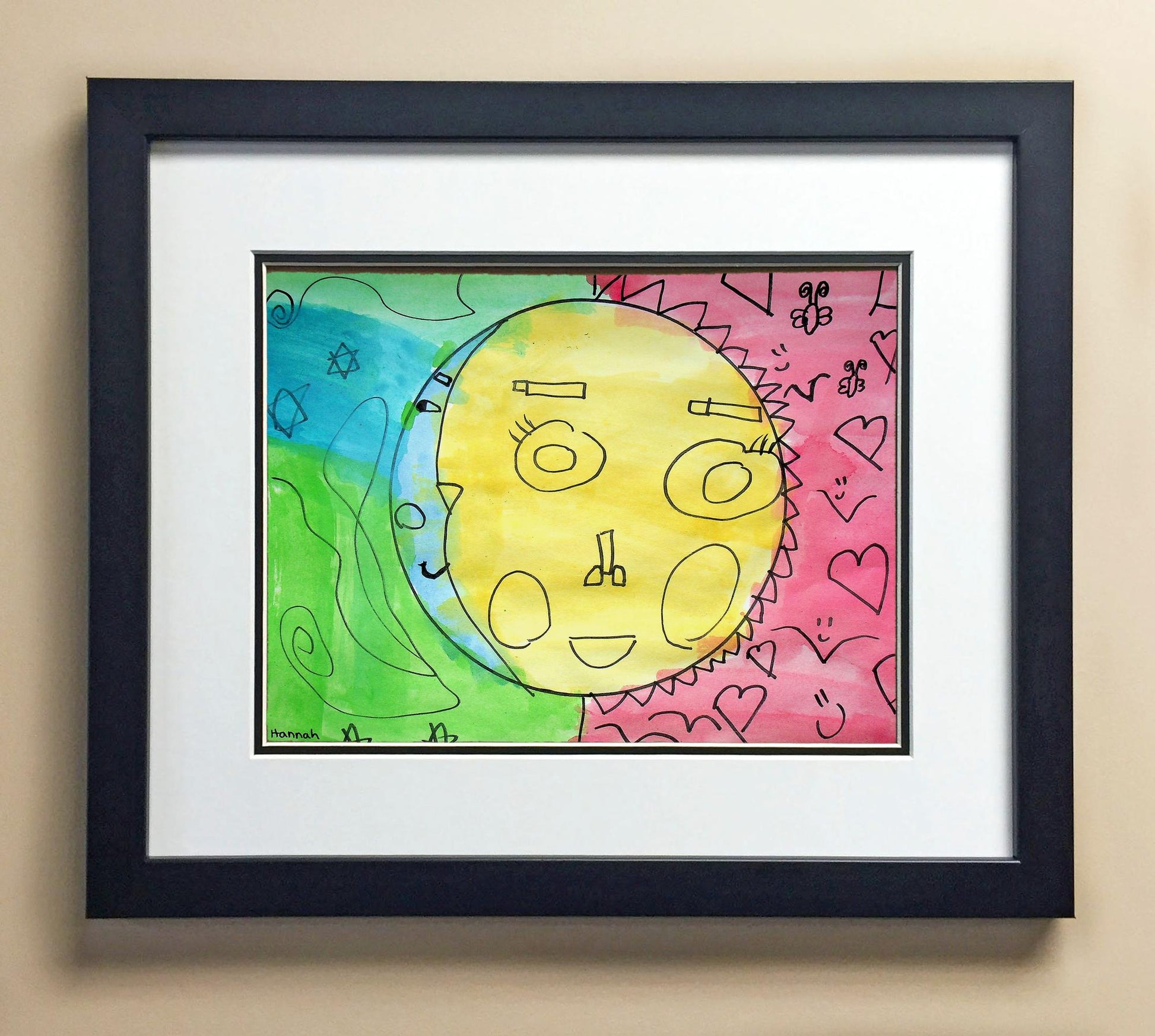 Included with the purchase is the Students Artwork, Frame, double matboard, shatter proof plexiglass, and a ready to hang backerboard with turnbuttons