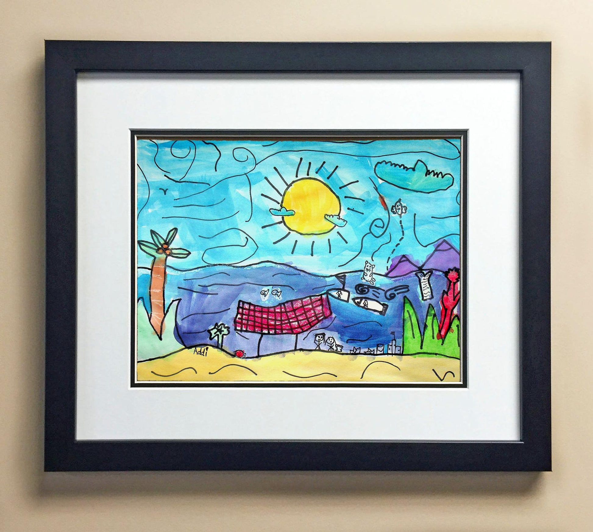 Included with the purchase is the Students Artwork, Frame, double matboard, shatter proof plexiglass, and a ready to hang backerboard with turnbuttons