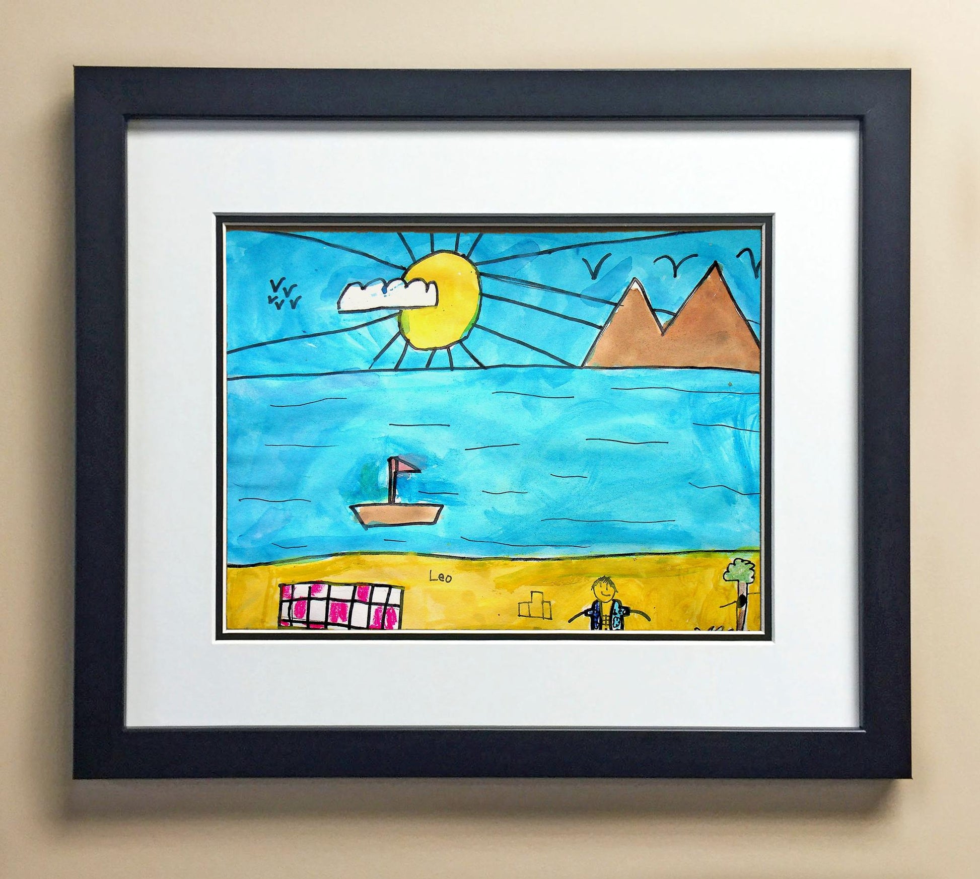 Included with the purchase is the Students Artwork, Frame, double matboard, shatter proof plexiglass, and a ready to hang backerboard with turnbuttons