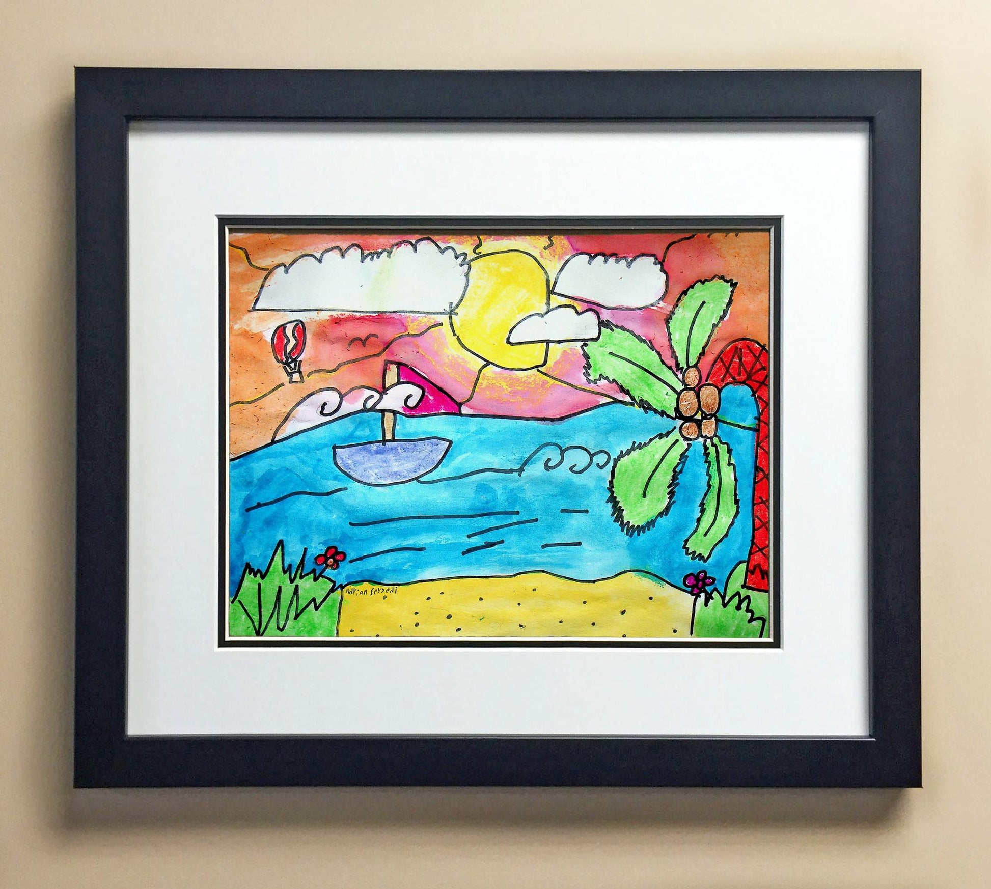 Included with the purchase is the Students Artwork, Frame, double matboard, shatter proof plexiglass, and a ready to hang backerboard with turnbuttons