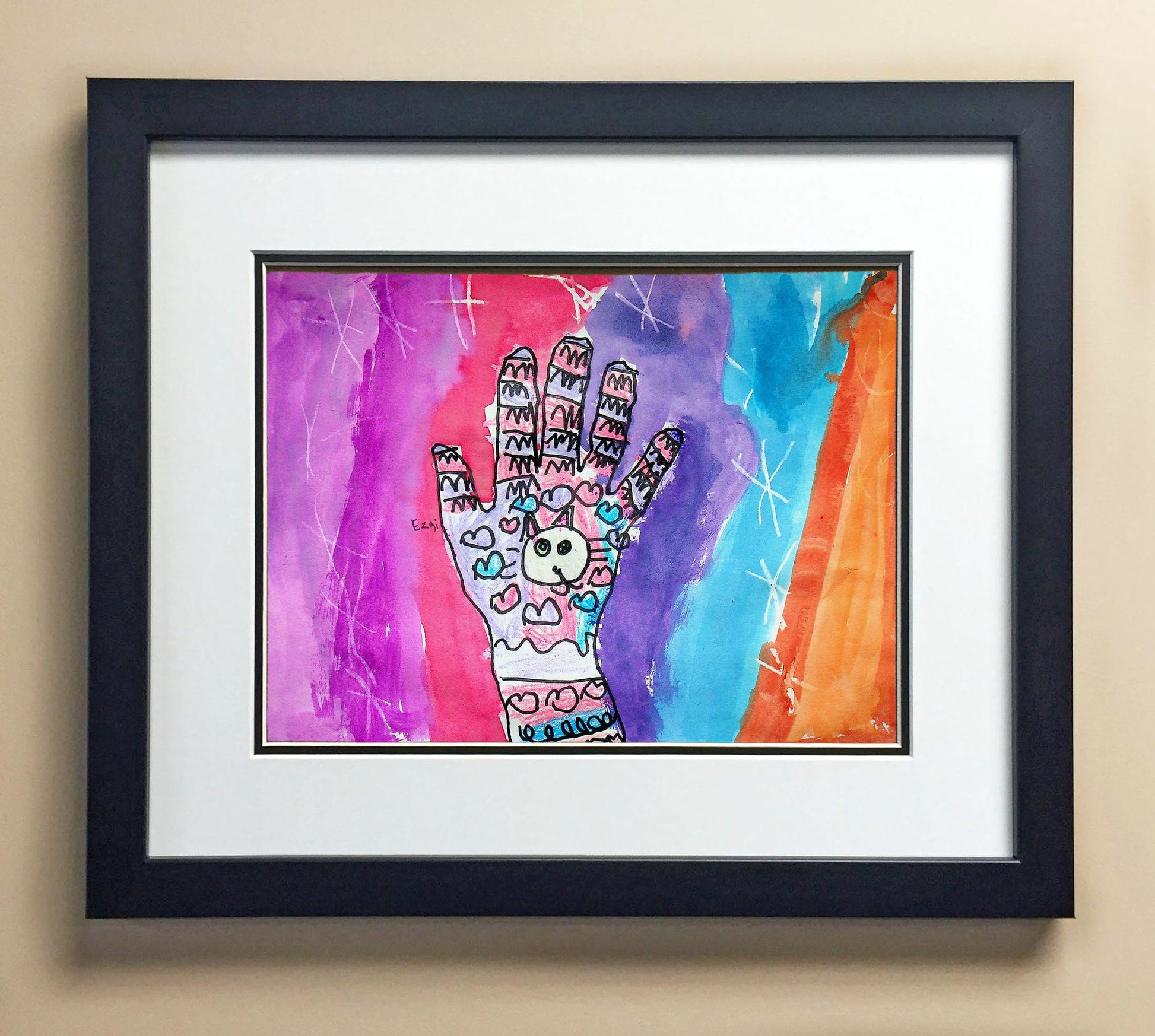 Included with the purchase is the Students Artwork, Frame, double matboard, shatter proof plexiglass, and a ready to hang backerboard with turnbuttons