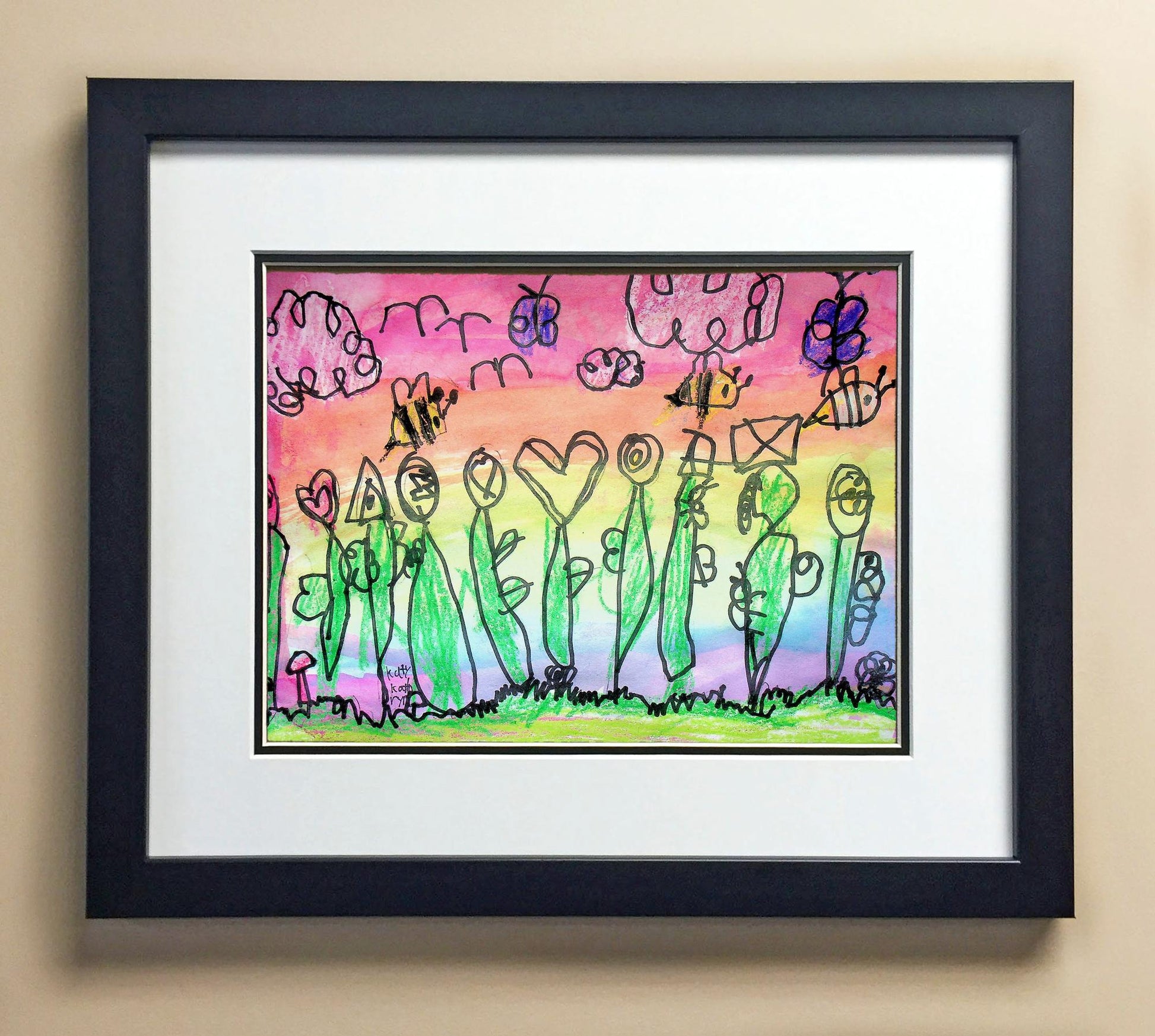 Included with the purchase is the Students Artwork, Frame, double matboard, shatter proof plexiglass, and a ready to hang backerboard with turnbuttons