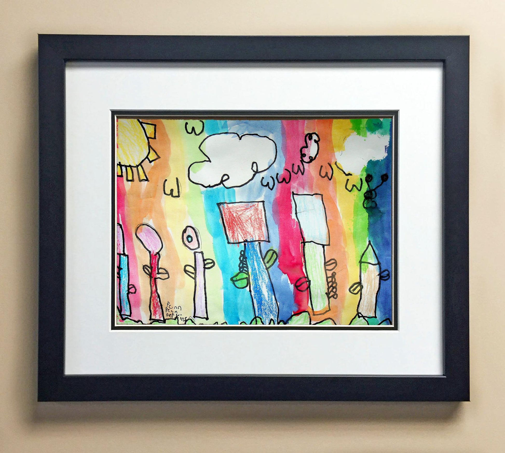 Included with the purchase is the Students Artwork, Frame, double matboard, shatter proof plexiglass, and a ready to hang backerboard with turnbuttons