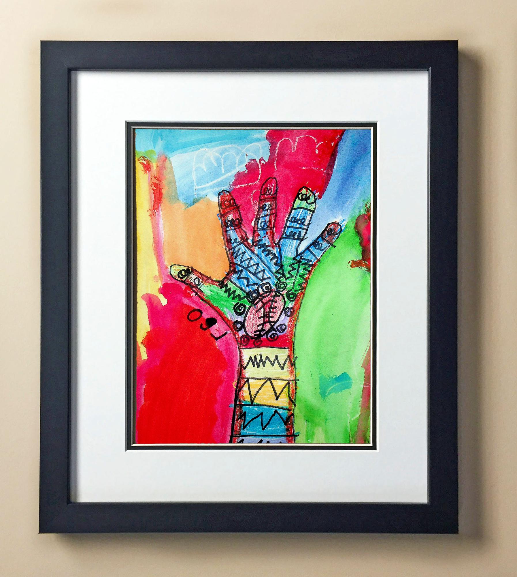 Included with the purchase is the Students Artwork, Frame, double matboard, shatter proof plexiglass, and a ready to hang backerboard with turnbuttons