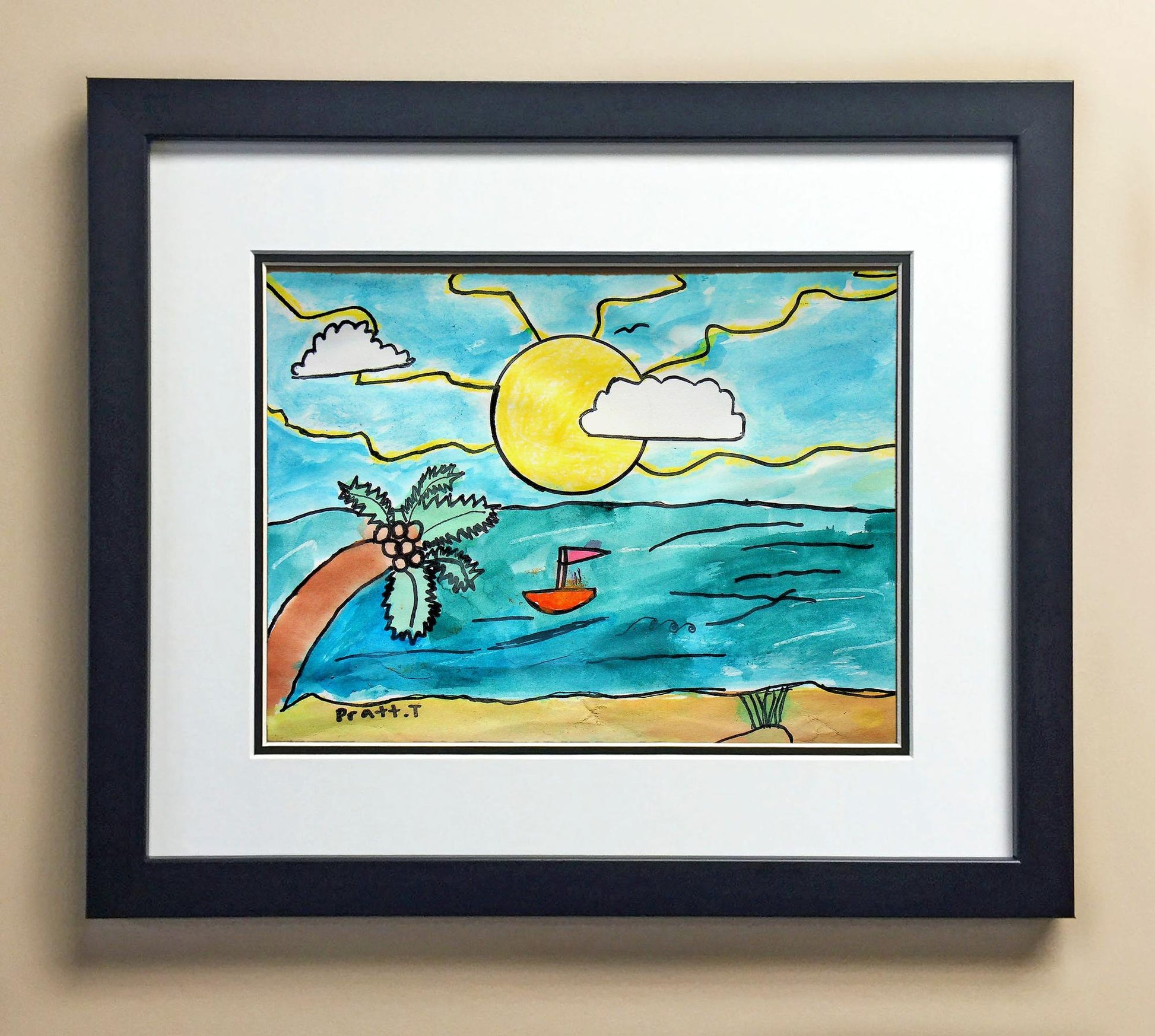 Included with the purchase is the Students Artwork, Frame, double matboard, shatter proof plexiglass, and a ready to hang backerboard with turnbuttons