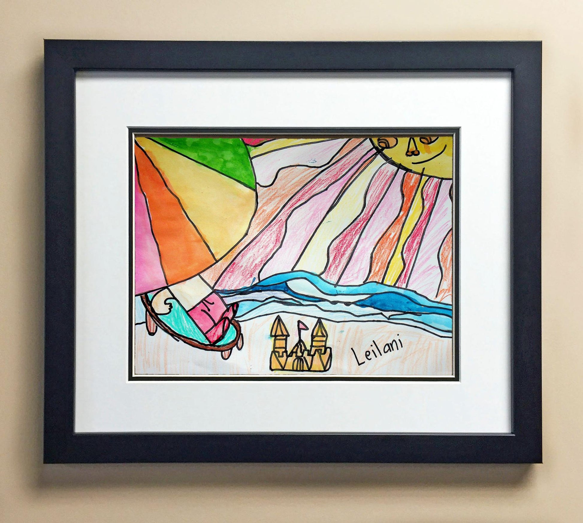 Included with the purchase is the Students Artwork, Frame, double matboard, shatter proof plexiglass, and a ready to hang backerboard with turnbuttons