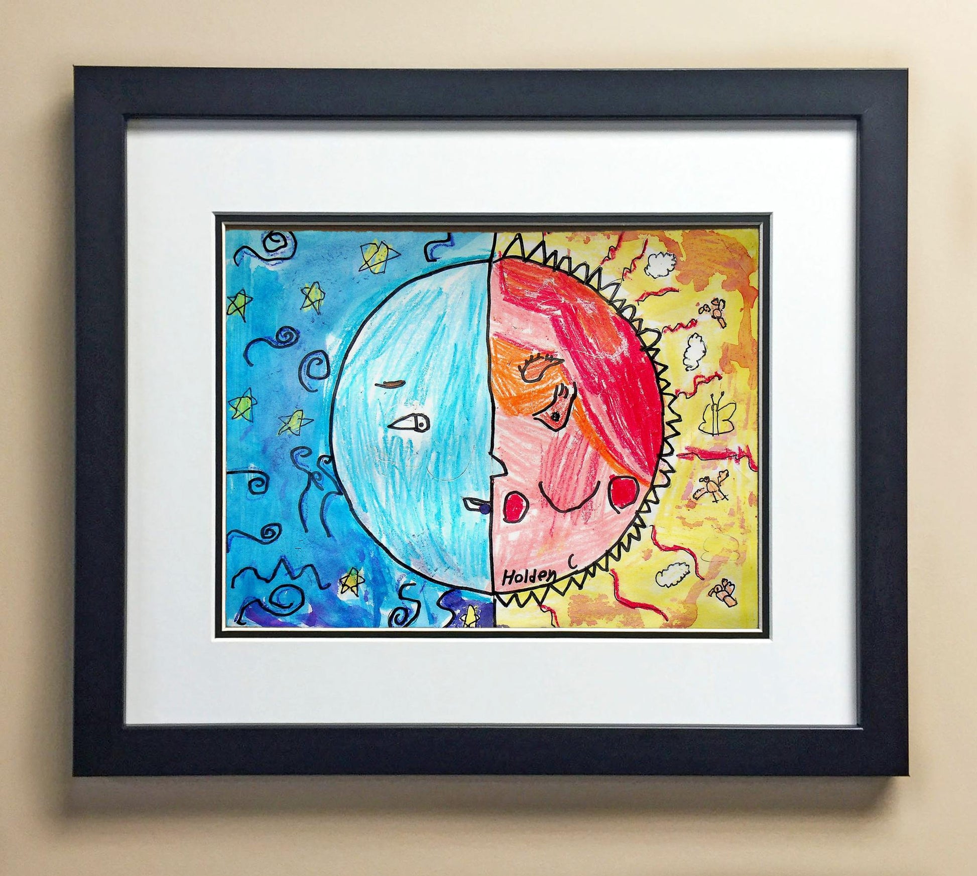 Included with the purchase is the Students Artwork, Frame, double matboard, shatter proof plexiglass, and a ready to hang backerboard with turnbuttons