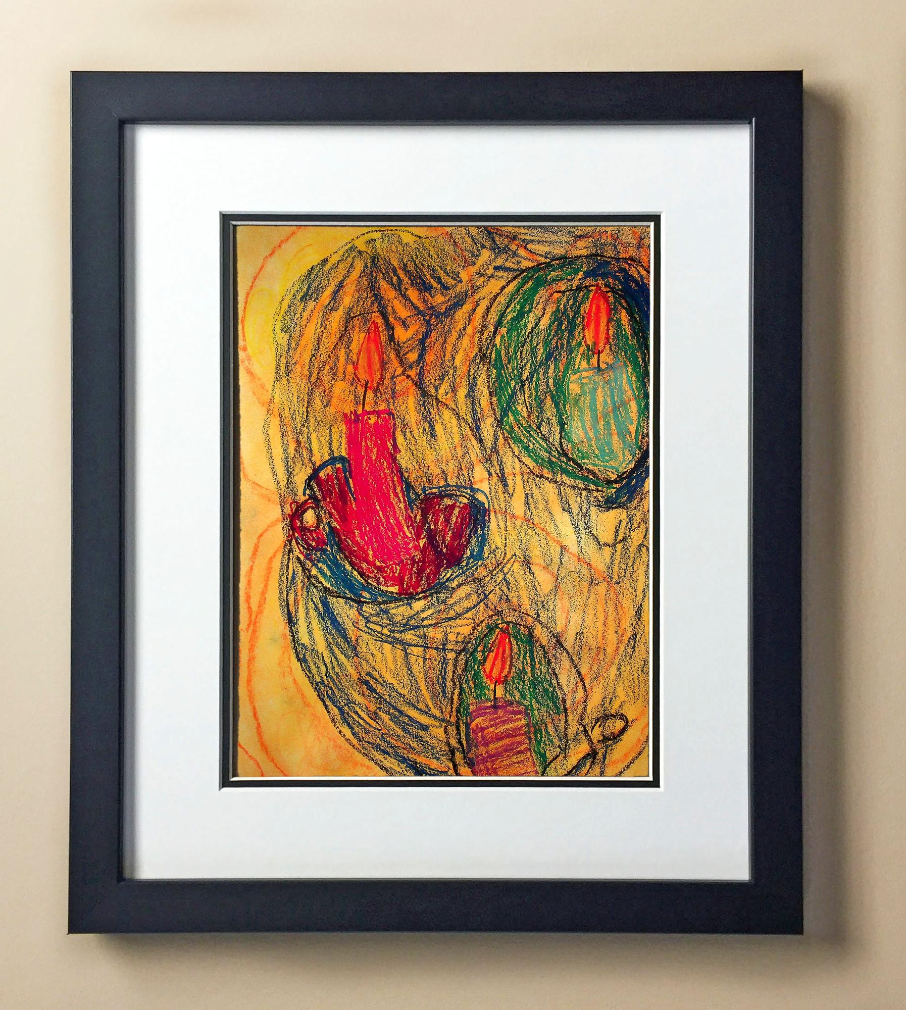 Included with the purchase is the Students Artwork, Frame, double matboard, shatter proof plexiglass, and a ready to hang backerboard with turnbuttons