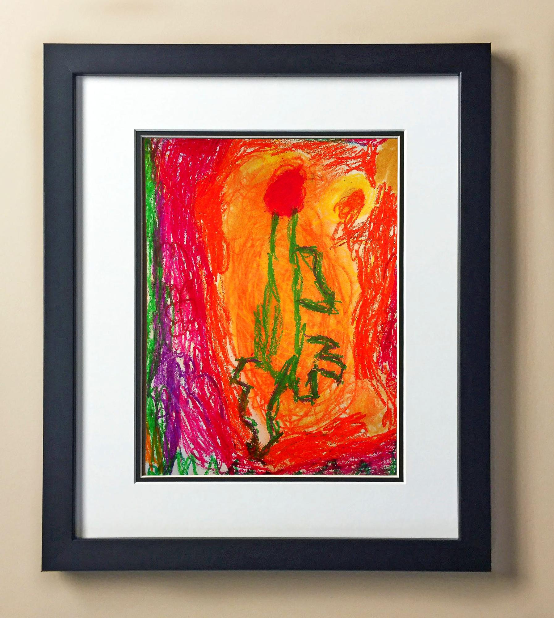 Included with the purchase is the Students Artwork, Frame, double matboard, shatter proof plexiglass, and a ready to hang backerboard with turnbuttons