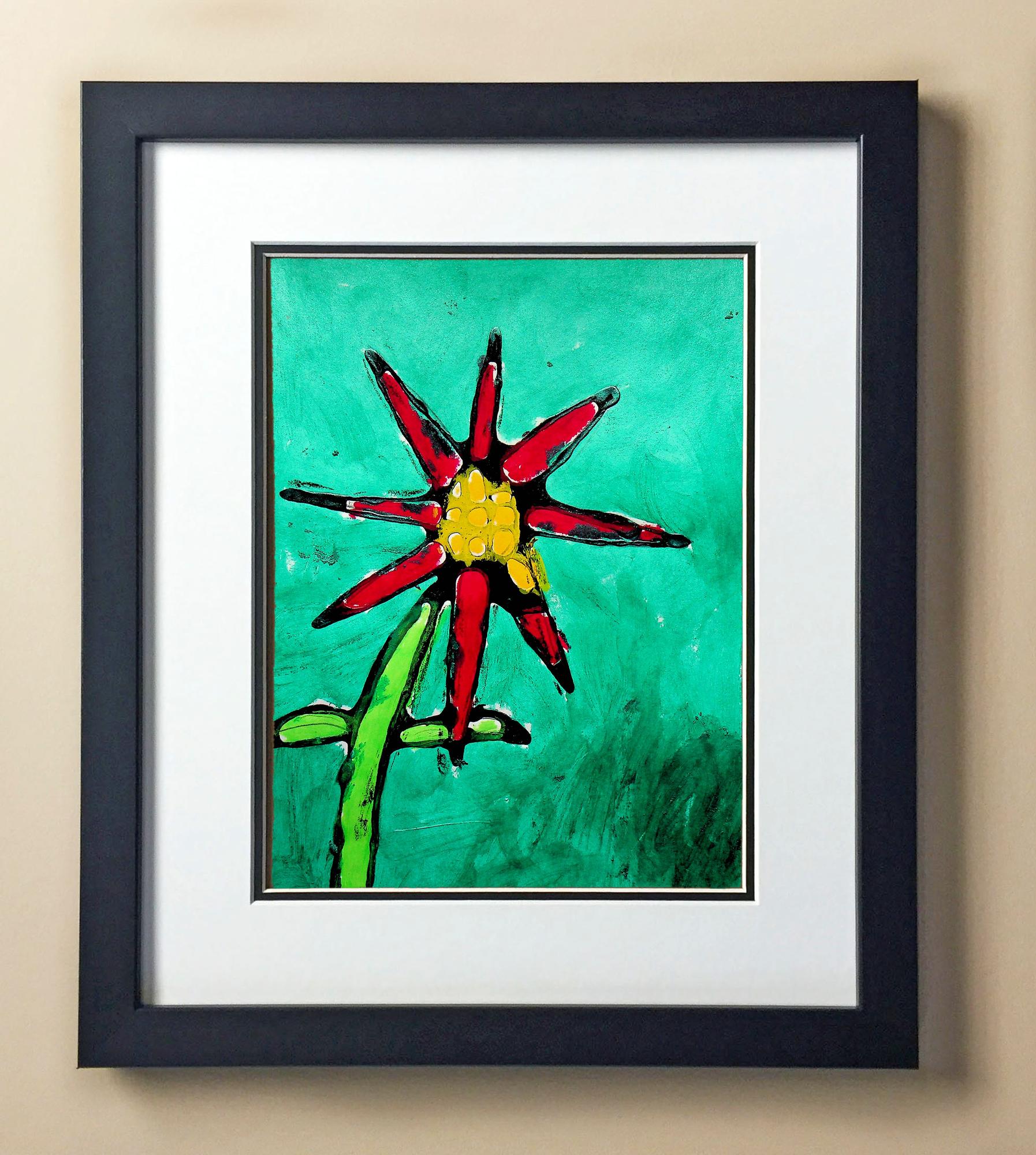 Included with the purchase is the Students Artwork, Frame, double matboard, shatter proof plexiglass, and a ready to hang backerboard with turnbuttons