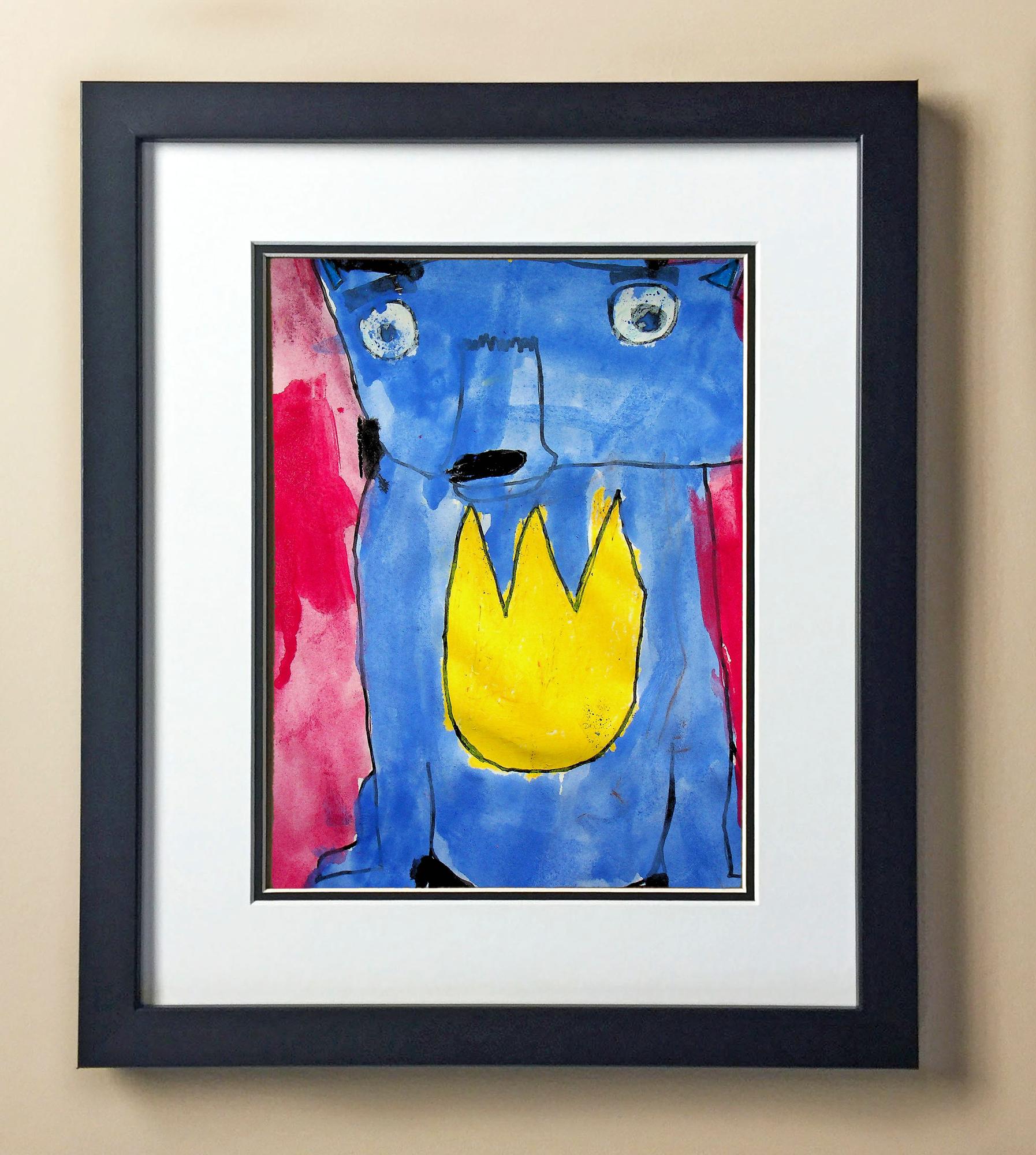 Included with the purchase is the Students Artwork, Frame, double matboard, shatter proof plexiglass, and a ready to hang backerboard with turnbuttons