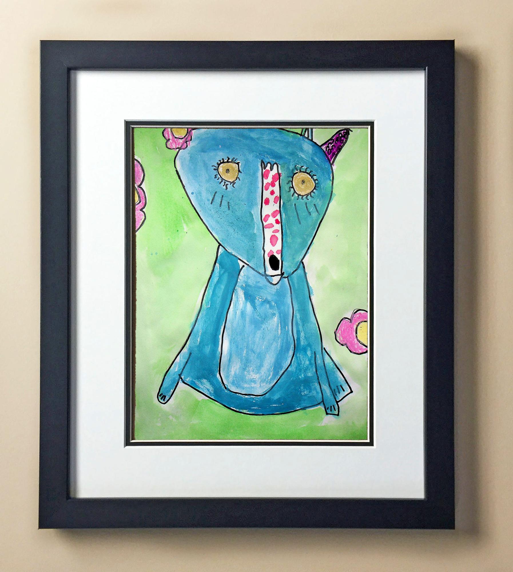 Included with the purchase is the Students Artwork, Frame, double matboard, shatter proof plexiglass, and a ready to hang backerboard with turnbuttons