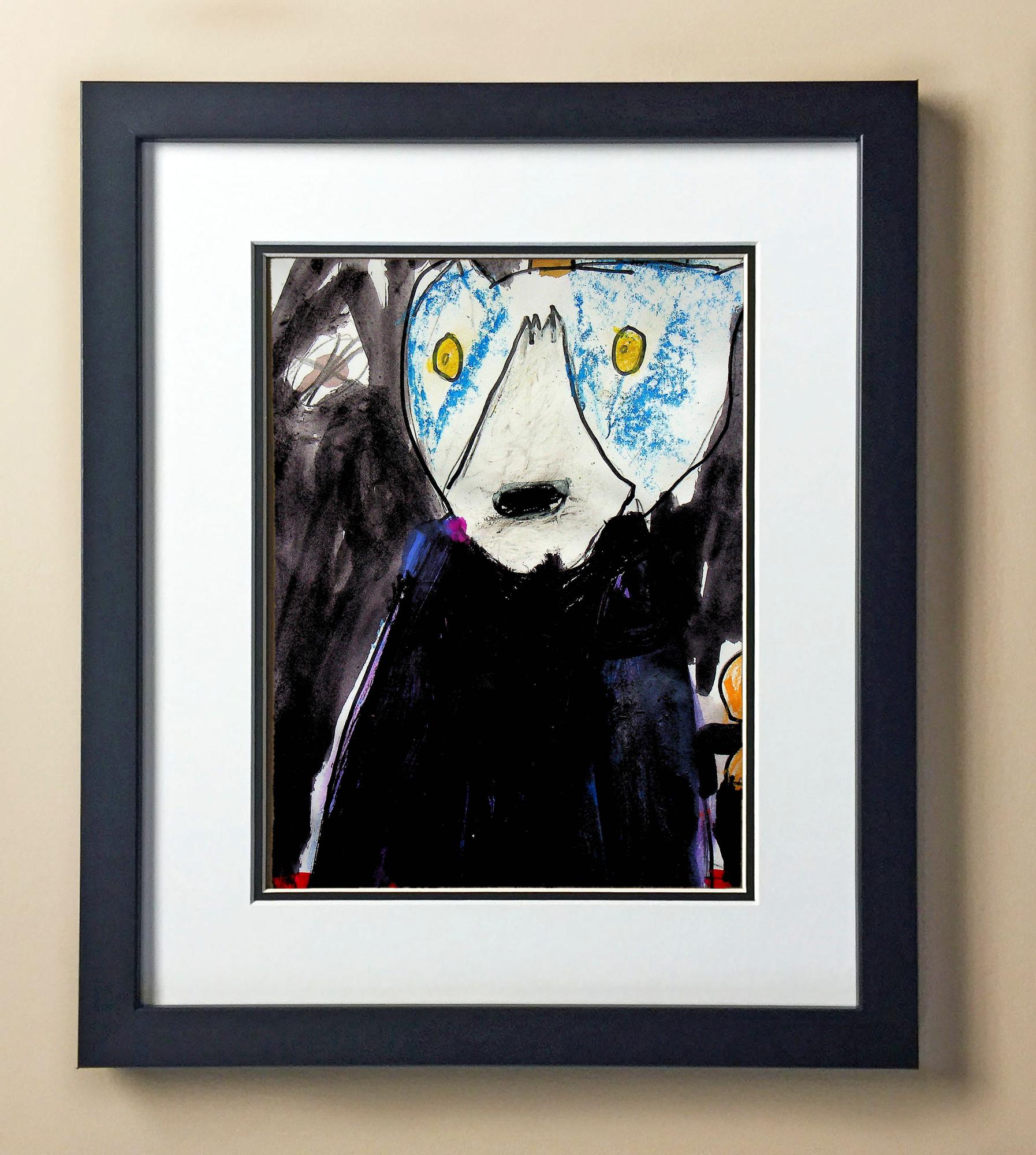 Included with the purchase is the Students Artwork, Frame, double matboard, shatter proof plexiglass, and a ready to hang backerboard with turnbuttons