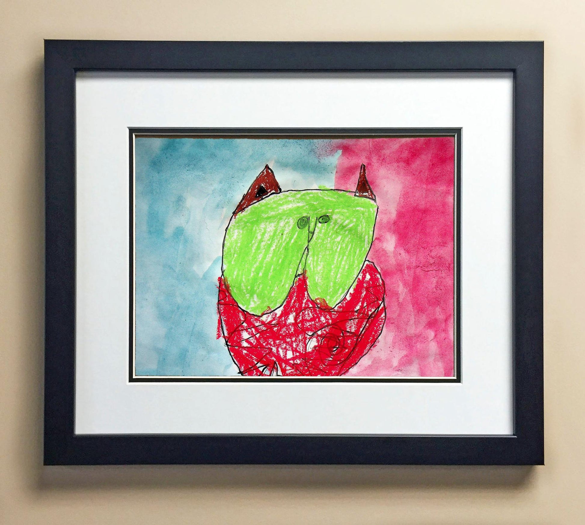 Included with the purchase is the Students Artwork, Frame, double matboard, shatter proof plexiglass, and a ready to hang backerboard with turnbuttons